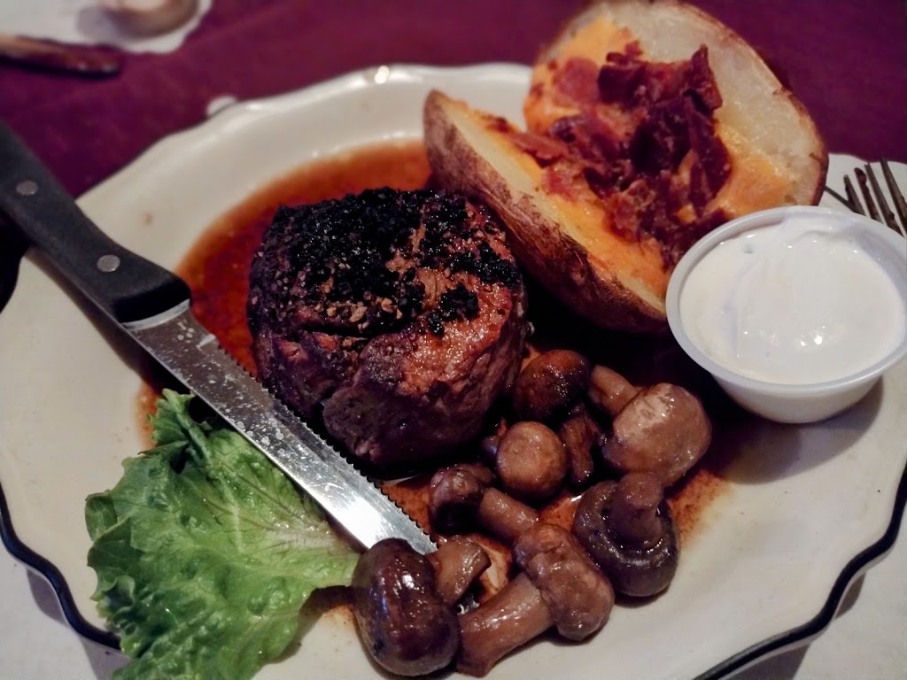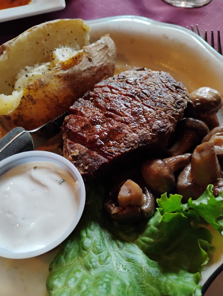 Great steak, great ribs, ice cream drinks and schaum torte.