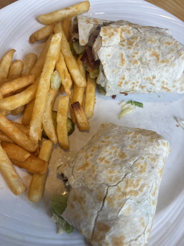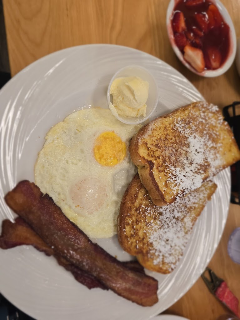 The French toast with blueberries and strawberries were both yummy. The burgers and fries are also very good