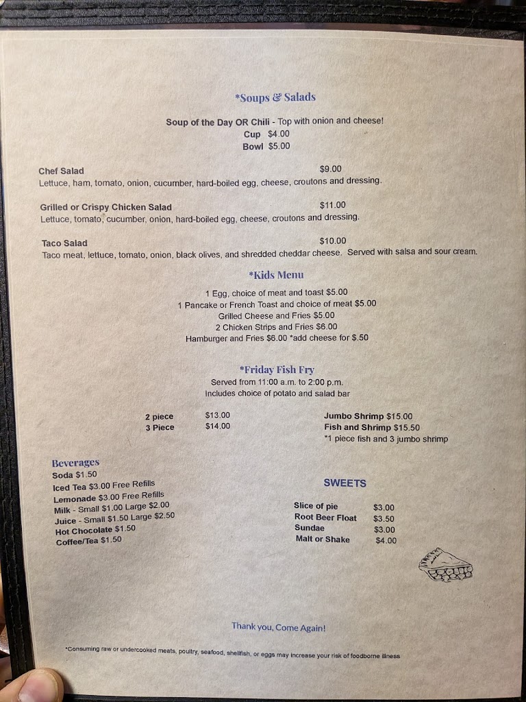 Tell all your friends and family this place has such good food and the atmosphere is so much like Home. Nice place to come for Breakfast or Lunch.