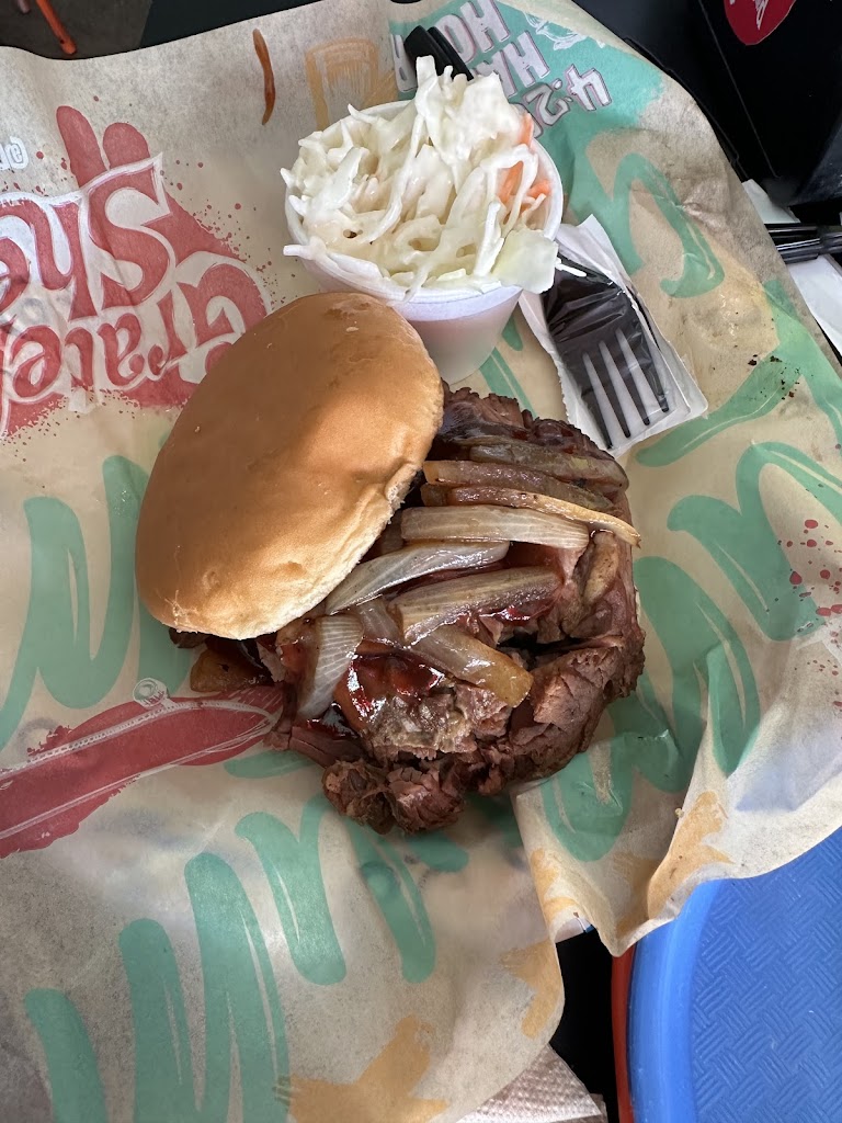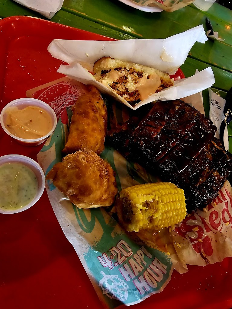 I got a full rack of baby back ribs, mashed potatoes, coleslaw, and a corn muffin. The best ribs I have ever eaten at a restaurant. Mashed potatoes had a nice consistency and good garlic flavor. Coleslaw was creamy, but not overly so. Shake was basically a soft custard. I would like butter with my corn muffin though, but that's not a big deal. Got my ribs faster than the sandwich my mom ordered at another truck before I ordered. The atmosphere was fun and entertaining. :)