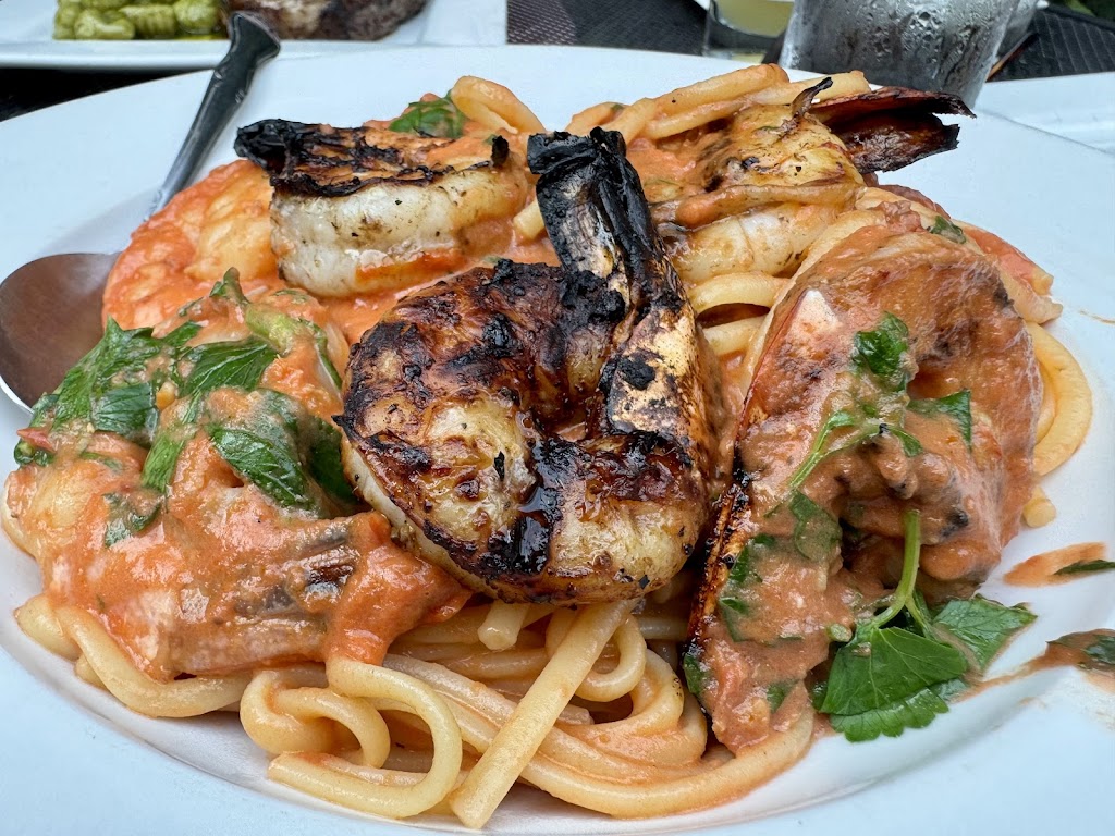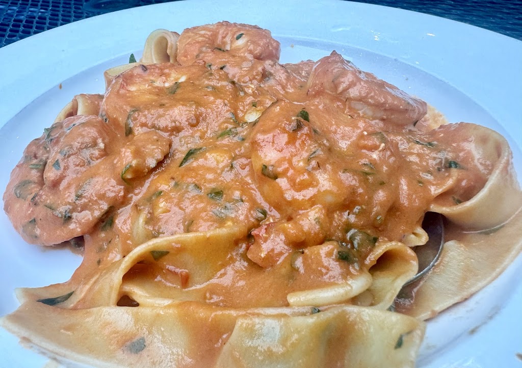 Honestly I can’t figure out the appeal of this restaurant. The service was good, but because we were on the patio it was very loud and our server was soft spoken so hearing him was difficult. He was very pleasant tho. The atmosphere is very nice on the patio. Little lights everywhere would certainly add to the ambiance. My dad hated his tortellini with Italian sausage on it. I had the cheese ravioli with Alfredo and chicken and it was just ok. I think they put amaretto or something similar to that taste profile in the sauce. The added chicken was $10. That seemed to be a lot, but it was what it was. My brother had the rigatoni with Italian sausage and said it was good. The couple next to us thought their food had no flavor. I’m sure I’ll be back, but I just think the food could be much better. This town is seriously lacking good Italian restaurants. I’ve had their carbonara in the past and I didn’t like it at all.