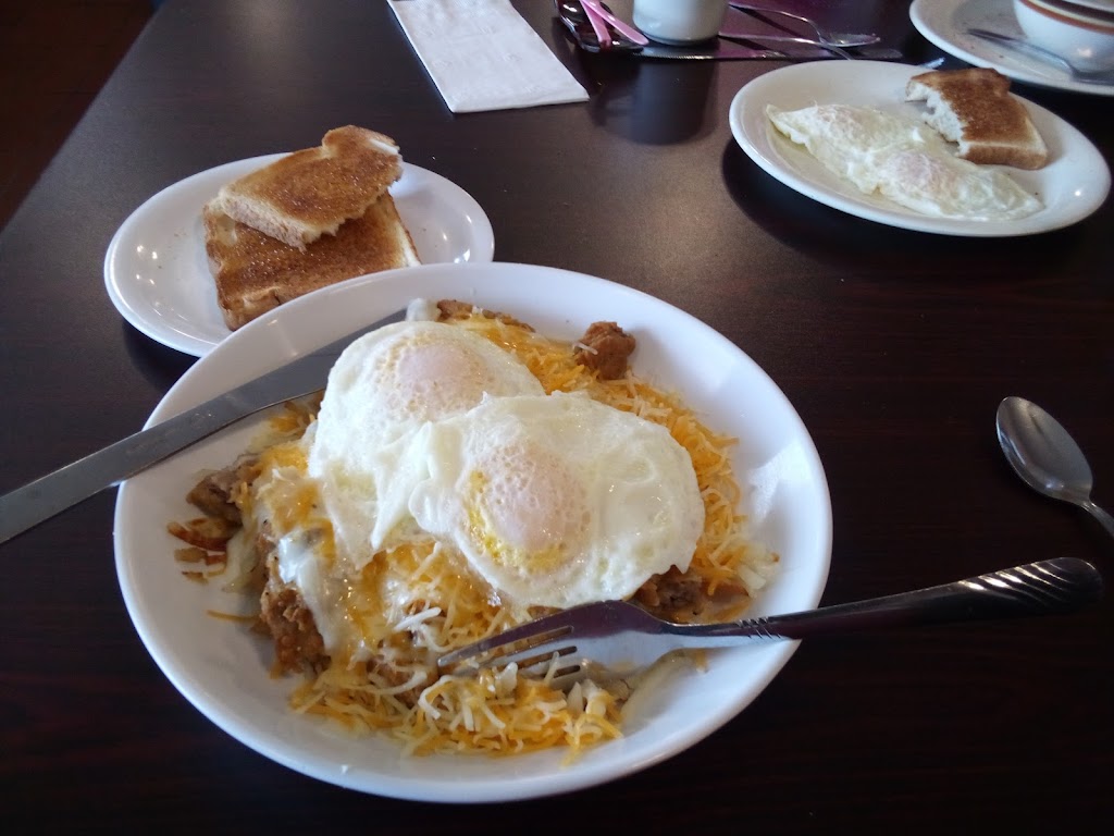 After asking the server about her preferences, I went with the Badger Griddle. It was amazing. The mixture of the sausage gravy with the cheddar cheese makes for a great combination.