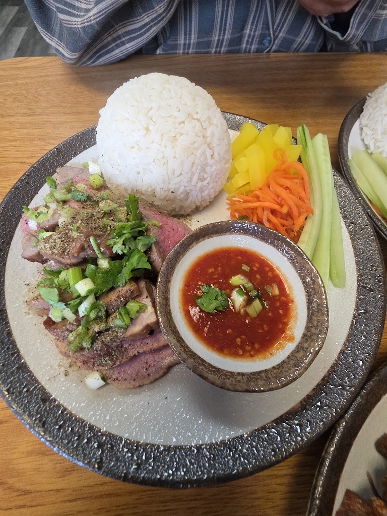 We tried the Fried Pork Belly with Sticky Rice, the Korean Short Rib with Rice and the Pork Egg Rolls and all were very tasty and next time we plan on trying some noodles 😁; fantastic, friendly service, too. 😋