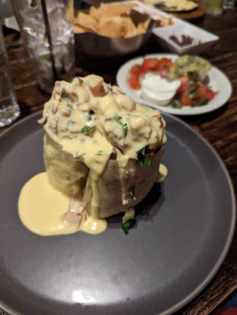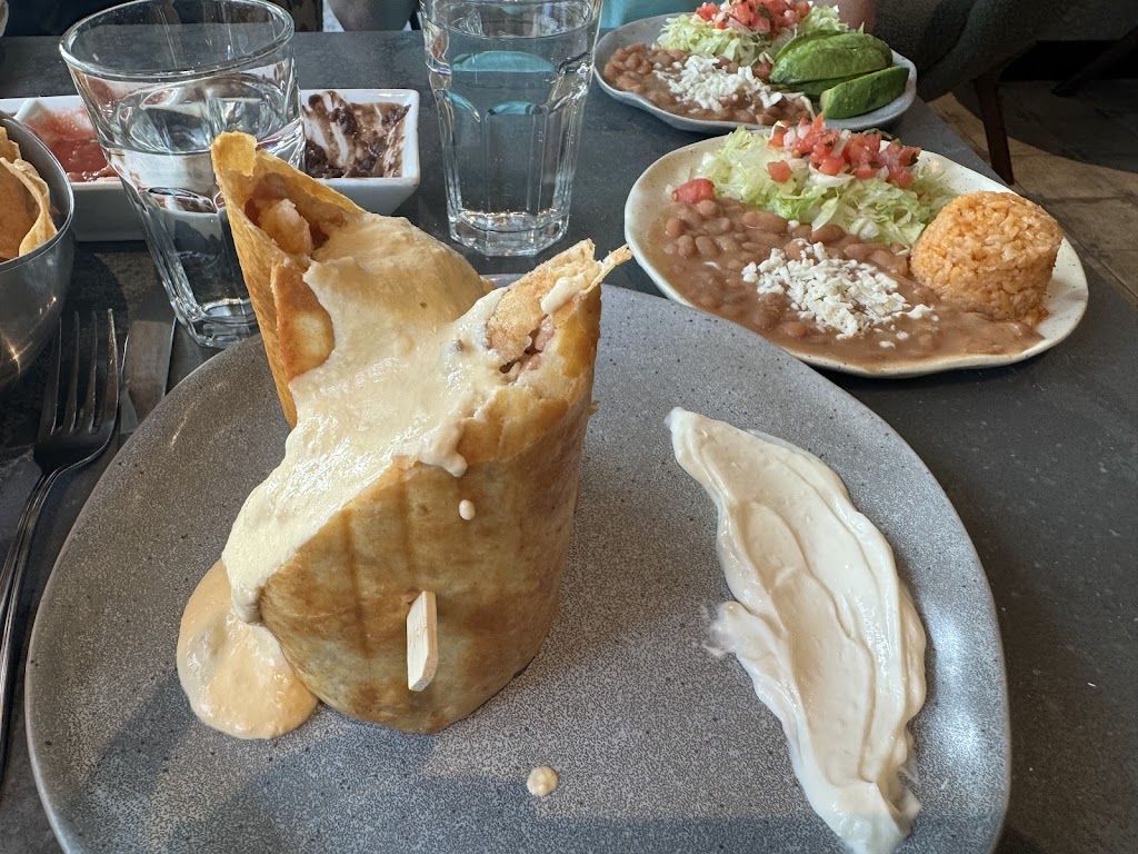 The food presentation was nice, but the service slow. The $10 margaritas were tiny, and the burritos were mostly filled with beans and rice—barely any protein. Overall, the place feels overhyped. Save your time and money and head to Sangria’s instead—much better service, tastier food, and more drink options.