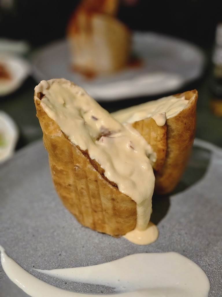 Had to stop finally after hearing such great things about this place. First impressions were a bit bad. A little too rustic looking for me, mismatched tables and chairs, plywood ceiling and kitchen made out of 2x4s with extension cords. Menu is a QR code on the table leaving us fumbling phones to see the menu.