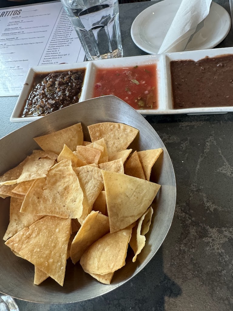 Fabulous service, atmosphere, drinks, and food! Felt like a hip Mexican restaurant you would find in a metropolitan area! We enjoyed the margaritas and Creamy Pina Colada’s (that’s a showstopper drink by the way—oohs and ahs from the whole table at its arrival), the complimentary chips and salsas were tasty, and I cleaned the plate of my Cremosa Chile Relleno (from their favorites menu) leaving SATISFIED. We will be back—with friends!