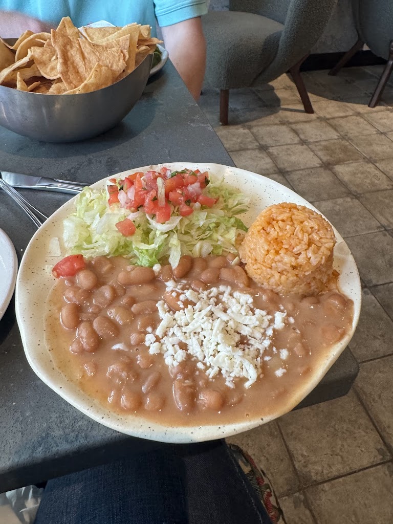 A little bit different for a Mexican restaurant. The food was great, reasonable portion of rice, and the beans were different. Cost a little higher but worth it.