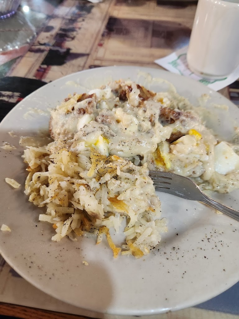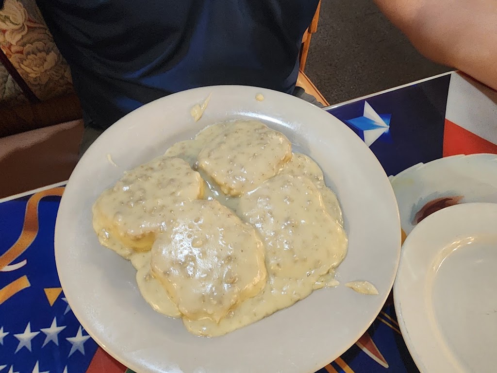 Had the biscuits and gravy. It was very good but the gravy was not on a biscuit but in half a bun. I think it should not be featured as a biscuit because it wasn't! Service was excellent!