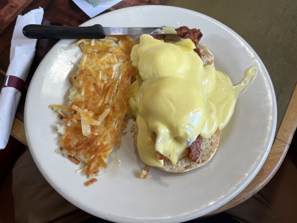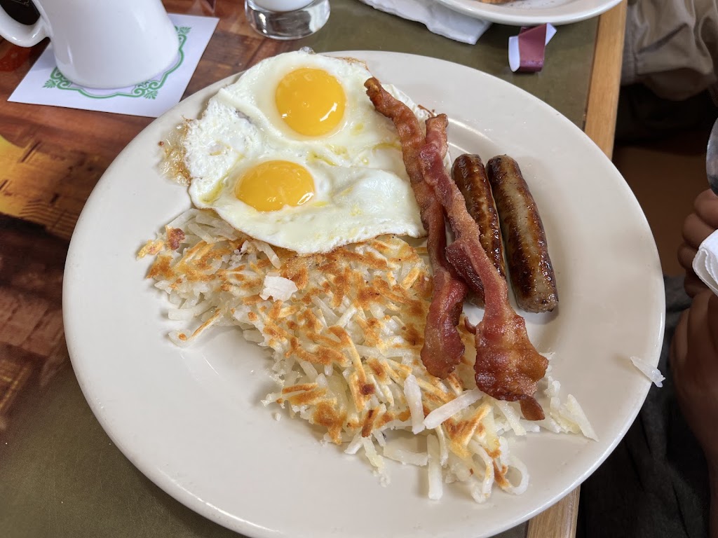 I went with the Cinnamon French Toast Combo, which came with two eggs 🪺 two strips of bacon 🥓, and a side of hashbrowns. The eggs were perfectly scrambled, though I will say the portion looked a little small — it didn’t quite seem like two full eggs. The bacon was nice and crispy, the hashbrowns were golden and cooked just right, and the cinnamon French toast? Absolutely delicious 🤤
