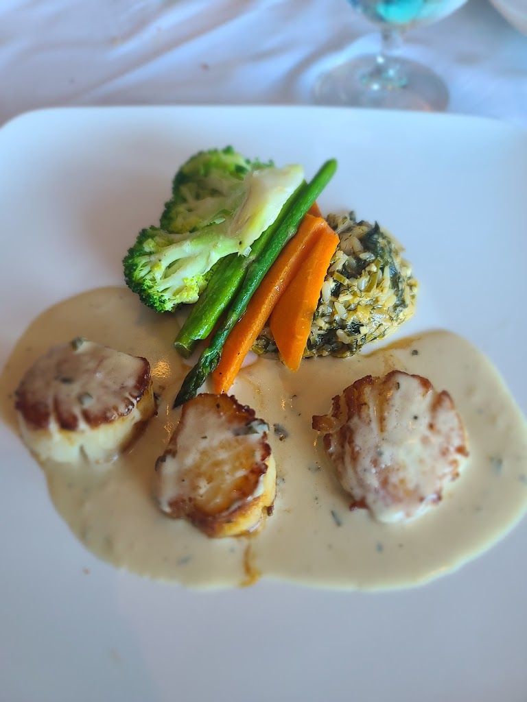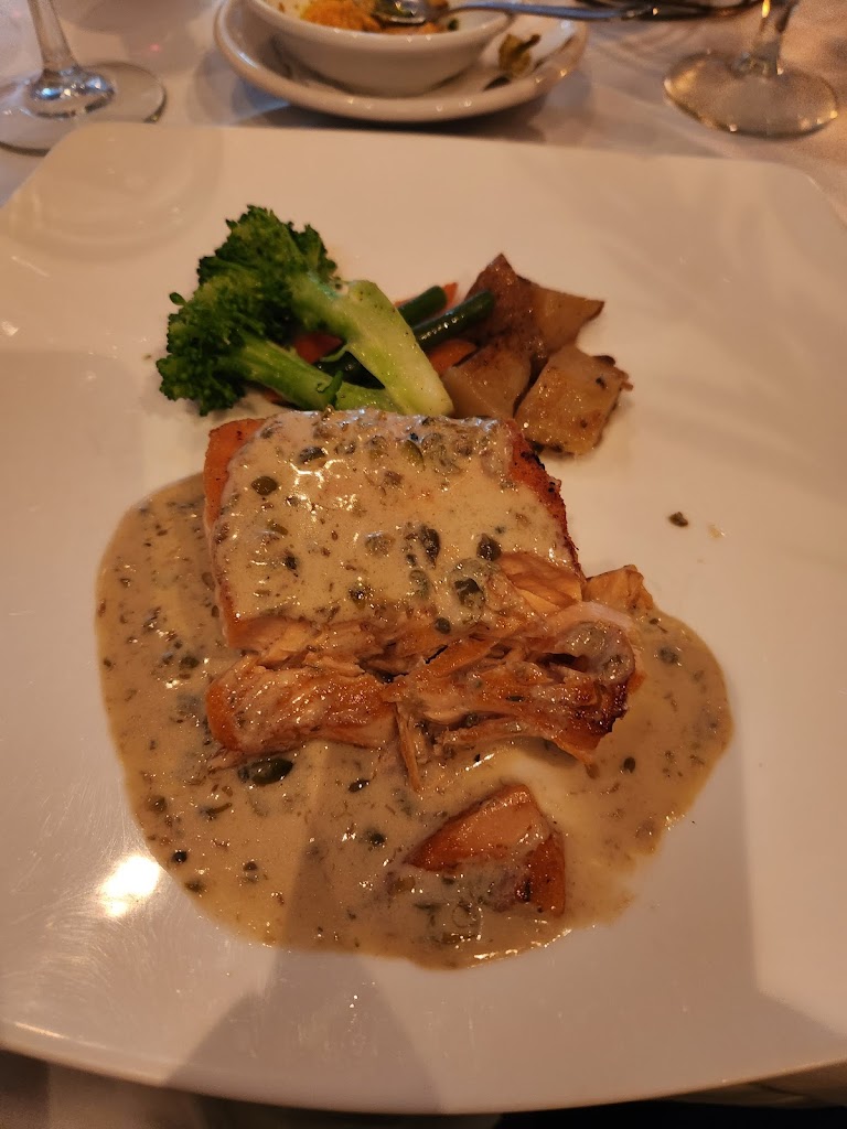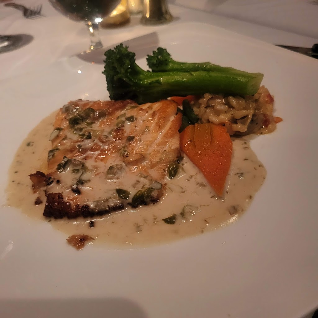 Food was all amazing we had the Scottish salmon and Mediterranean grouper.