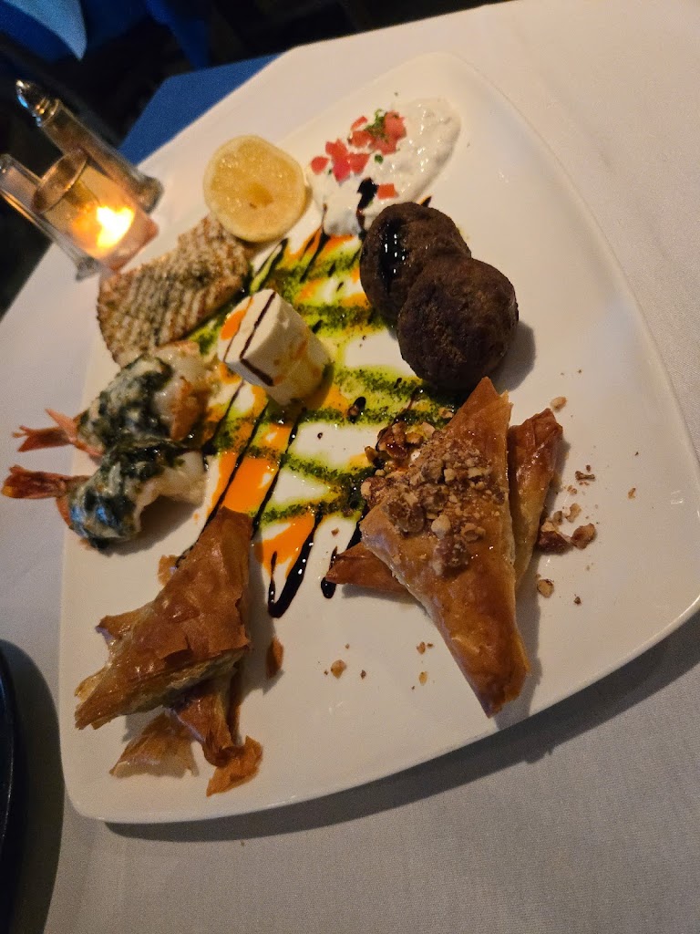 I enjoyed a good, but not great meal. The atmosphere & service were above average, however I felt that there was a drop-off in flavor profiles . Such a wide variety of bites that could really shine if the Greek/Med. seasonings were kicked up a couple of notches.