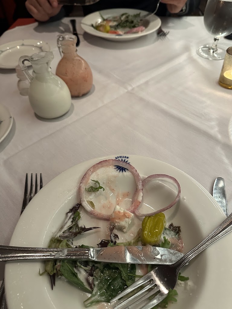 On a whim, a close friend and I decided to go out at half past five in the evening, hoping for a very executive dining experience. Despite the restaurant being empty except for three tables, and with no suggestion to the contrary posted on any online material, Apollon does not take walk-ins. In addition, the host was quite standoffish and haughty when they loudly announced that there would not be an open table until half past six, and did not give an apology for the inconvenience.