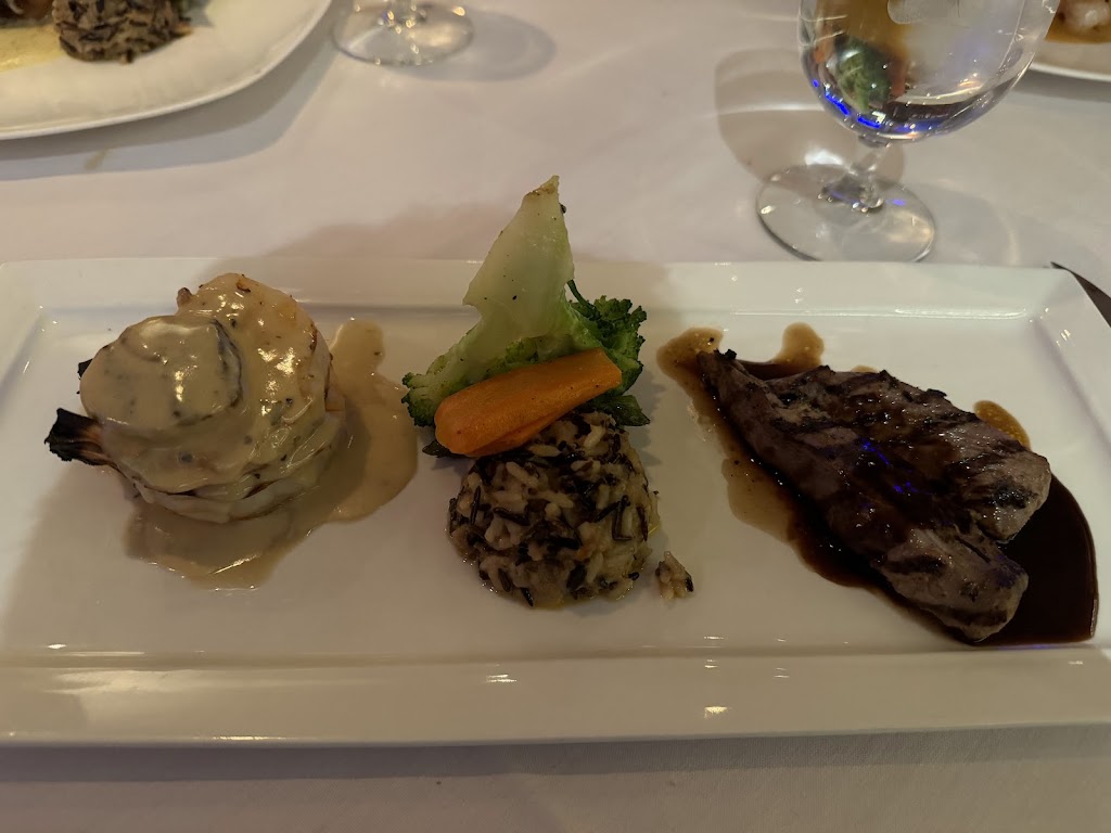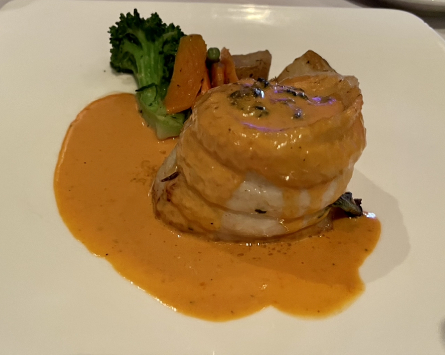 On the other hand, my Lamb Chateaubriand Forestiére was excellent. Cooked perfectly to order, the sauce was flavorful and delicious. There were only a few mushrooms (I prefer more, but this may be the intended style), but the meal was delicious. On the other hand, it is quite difficult to mess up a broiled loin of lamb.