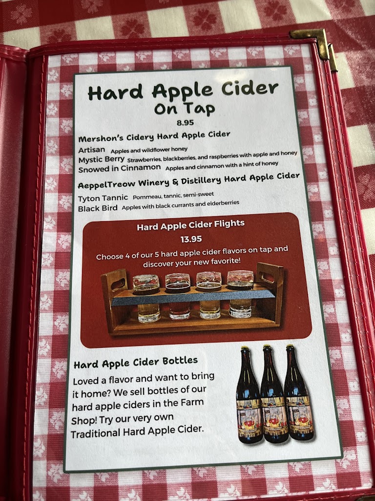 Back for another visit from Chicago. Great customer service. Little mishap with my lunch, but the staff were attentive and gave me a six pack of their famous Apple Cider Donuts. The women in the gift shop were great and answered all my questions.