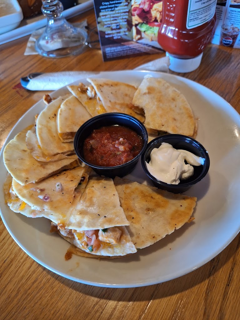 It is one of our regular date night places. The food is always good and the staff is always attentive and friendly. This time, I had the chicken quesadilla, and it was delicious.