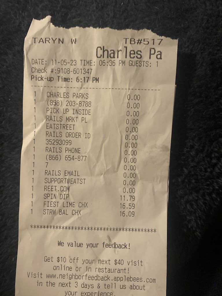 Highlyyyyy disappointed. Go anywhere else but here. Ordered at 6pm for a takeout and they said it would be ready at 6:17. As you can see on the receipt didn’t get the food until 6:36pm. My husband went to pick up the order by himself. THENNNN we didn’t realize there was no chicken in the strawberry CHICKEN salad that we paid $16 dollars for until he was back home. When we called the restaurant it was hell getting ahold of someone then when we did we couldn’t even get ahold of the manager because nobody was picking up. This place is a joke. You’re better off just going to Wendy’s for a strawberry balsamic CHICKEN salad.