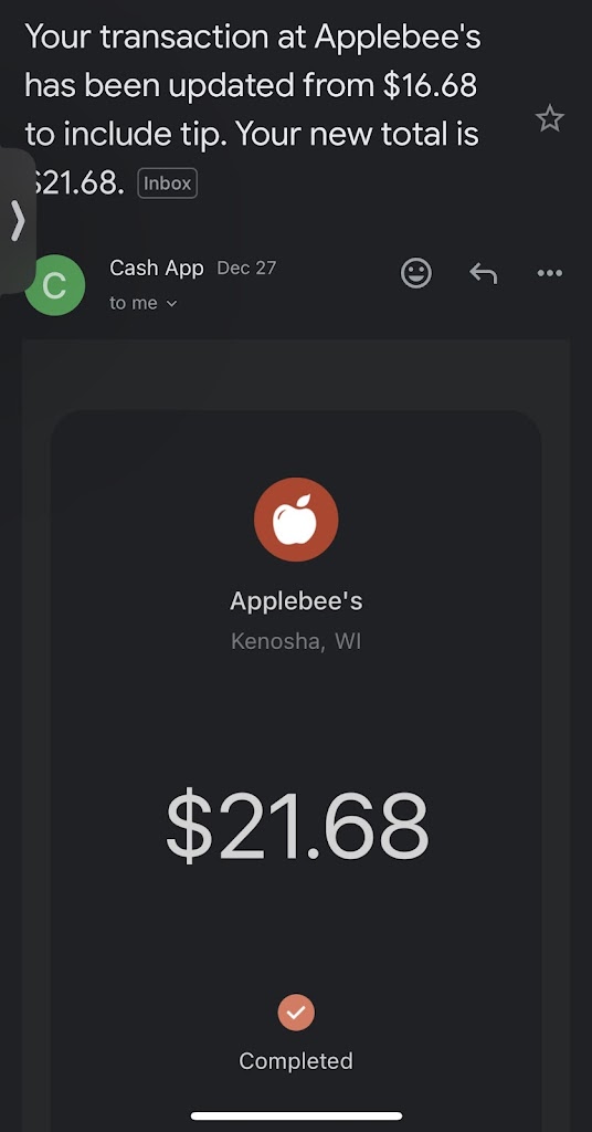 After I ate there ALONE for maybe a max of 23mins and paid my tab. I got an email the amount I paid was changed! They added their OWN tip for $5 and I was sitting at the BAR. This should be illegal. After the new management change I thought the would be better but it’s the same. Ps I gave him 3 dollars in cash! Smh. Ima broke college kid that’s my Netflix money😩