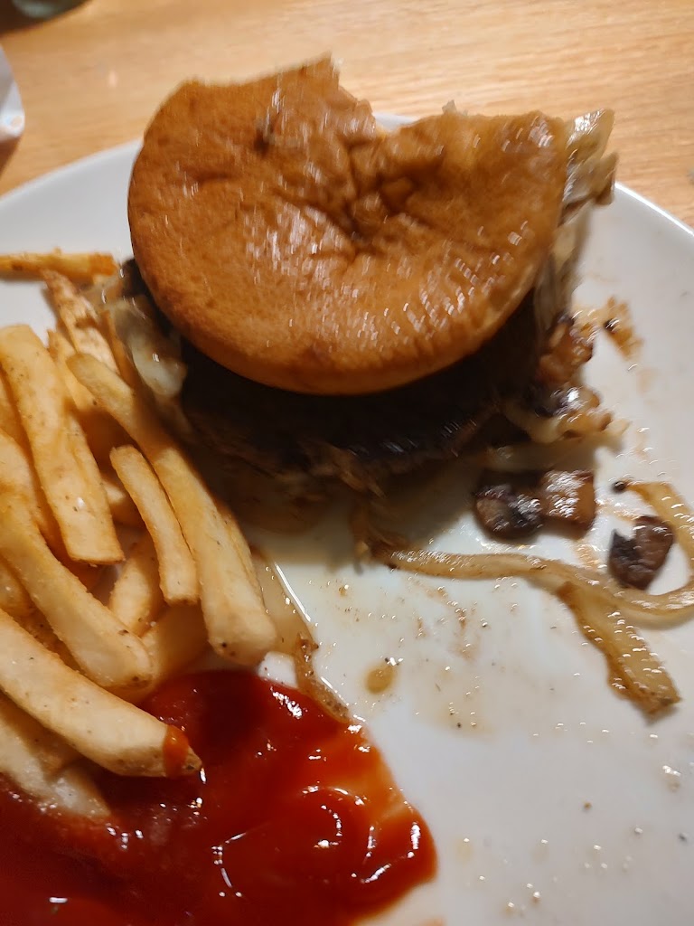 It was okay, service was okay, server was nice and came back a lot but didn't bring me my soft drink that came with the meal, I ordered through the person who gave us the food.. The food was tasty... I got a burger which was really good! wife got a salad which she really enjoyed..my fries were cold..