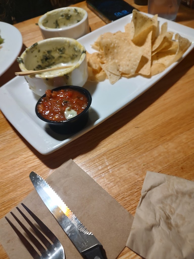 Service was slow . Got the spinach and artichoke dip as appetizer it was cold . Main entrees were nothing special . The drinks were the best part . Good deals on the alcohol drinks and they were made perfect