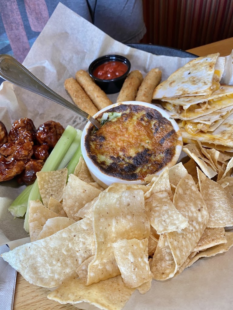 The food was great. I had the chicken quesadilla. My friend Connie had the crispy double breaded bone in wings. Our waitress was rude, and the service sucked. The waitress apologized and said she worked two weeks straight. 😳