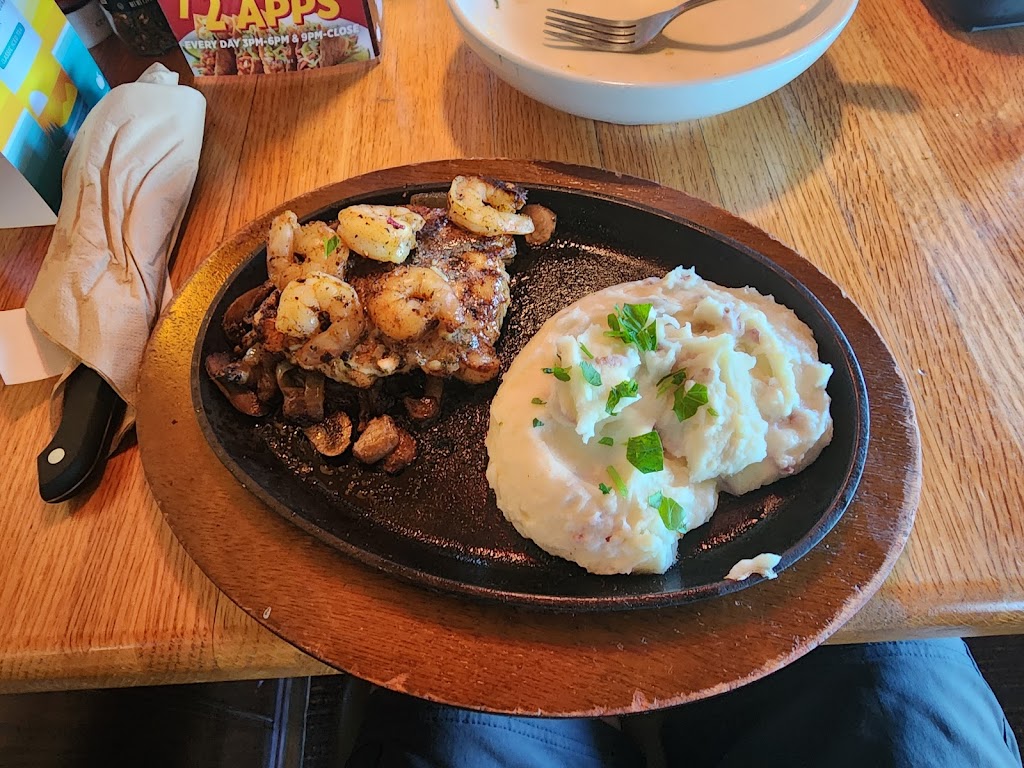 Great food and great service. Steak and mashed potatoes. Excellent.