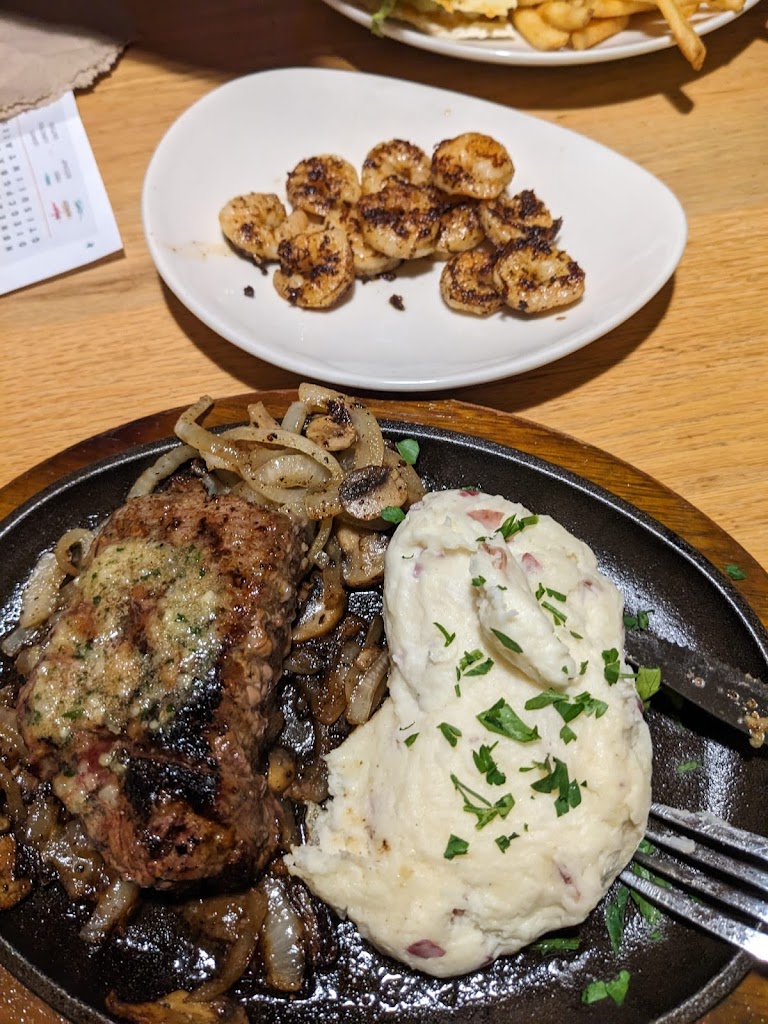 Orderered boneless wings buffalo sauce cold, cut open wings weren’t fully cooked. Remade sauce hit some were fully cooked some Werner took left over wings to go to cook in oven at home. Burger was good, mashed potatoes needed butter. Server didn’t come to check in had to flag down another server to tell about wings. My ole lady had the chicken hers was cooked good. She gave me her shrimp I would of liked some lime to squeeze on it but server didn’t come back till we were done than when it was time to pay it took forever she didn’t come back my ole lady had to find I think the server was sitting down with employees in the back sounded like they was Arguing. When I got home the chicken made me sick. Tried telling the server when it was time to pay she just said the sauce was cold. I cut into the chicken and was not fully cooked through. When I was trying to explain she just walked away.