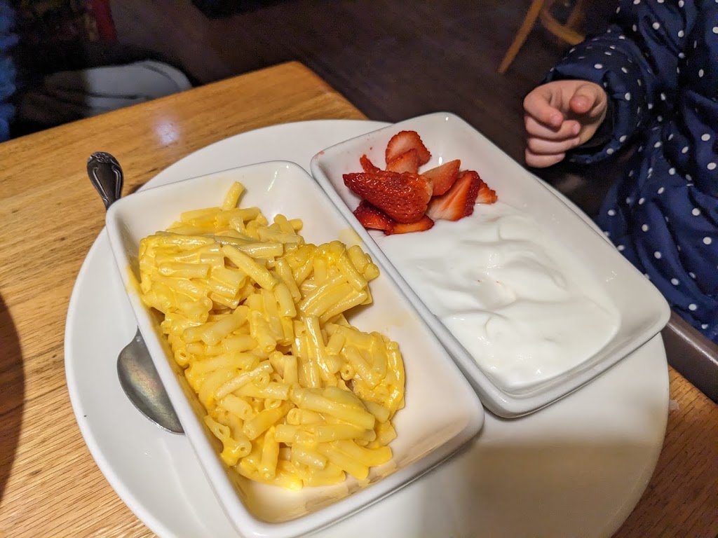 I had the macaroni and cheese with honey pepper crispy chicken. It was very good.