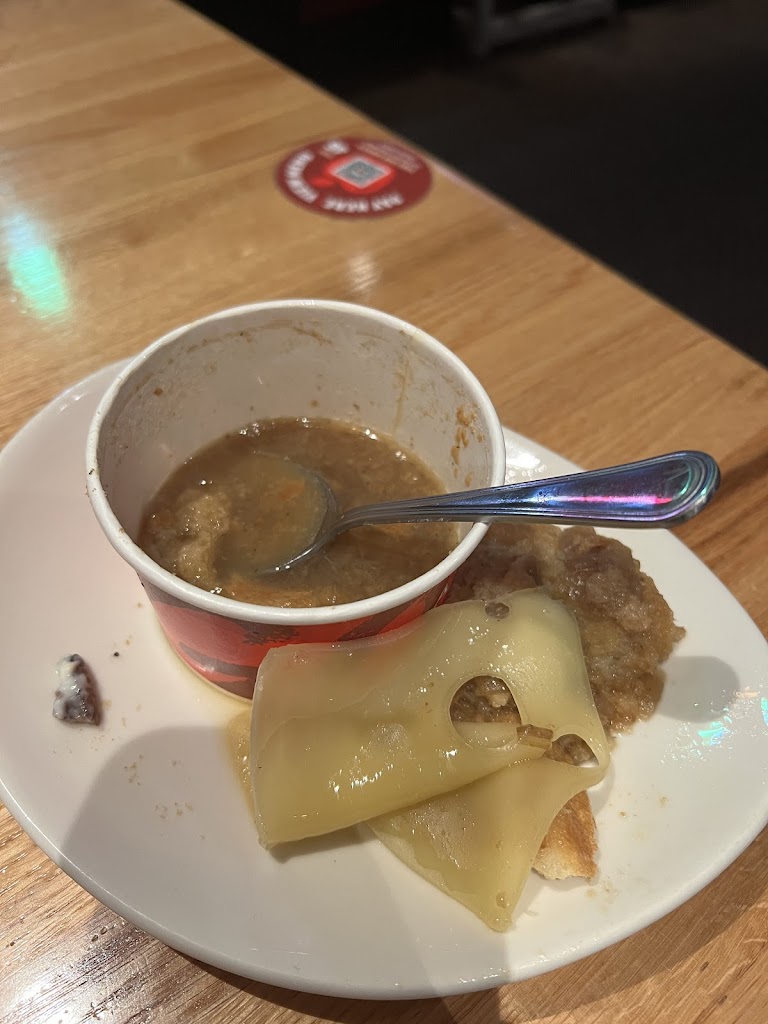 Will not be going back. For a heads up don’t order the French onion soup. Per the manager this is the new recipe for the soup. I did not eat any of it and there was maybe 1/4 soup actually in the cup. Our server was horrible. He set down hot plates at the end and did not warn us how hot they would be. Never got any drink refills. Asked to talk to the manager and that took 20 minutes. Our server was on his phone the whole time and just sitting down. Out of the 3 tables there, 2 (including myself) had issues with there order.