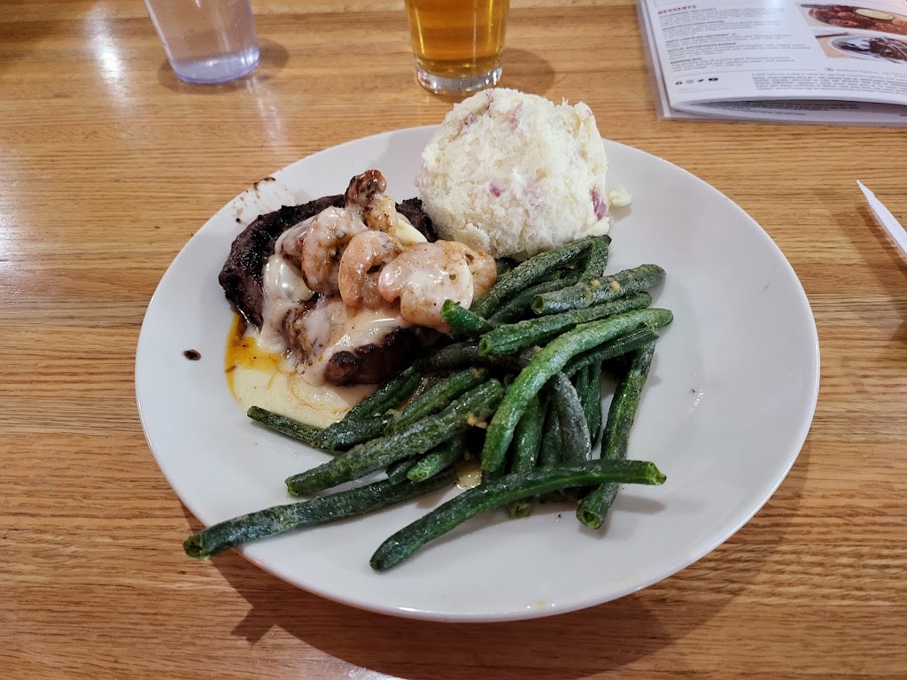 The service was okay, not great. The food was okay, not great. The building had a kind of run down feel to it but it was okay, not great. I had the shrimp and steak and it was cooked well, but not great. The overall experience was just okay, not great.
