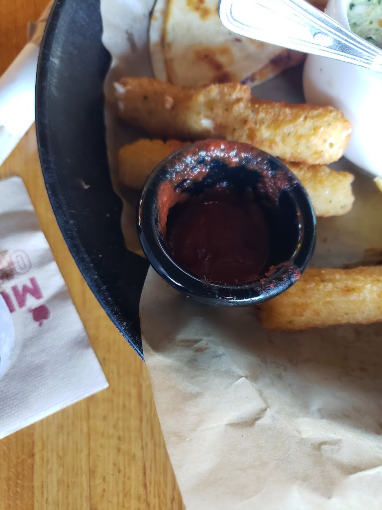The service and dish I ordered, I must say, the worst experience I had dining out. For my young daughter as well. The first time that I had dined there with my children, the experience wasn't much different. I will not be back. Not to mention, I believe I was served a cup of marinara from a dirty, used plate. The cup didn't contain much marinara at all. It was cold and dried to the rim as you can see in the photo below. Also, I recommend a deep cleaning in the place sometime soon.