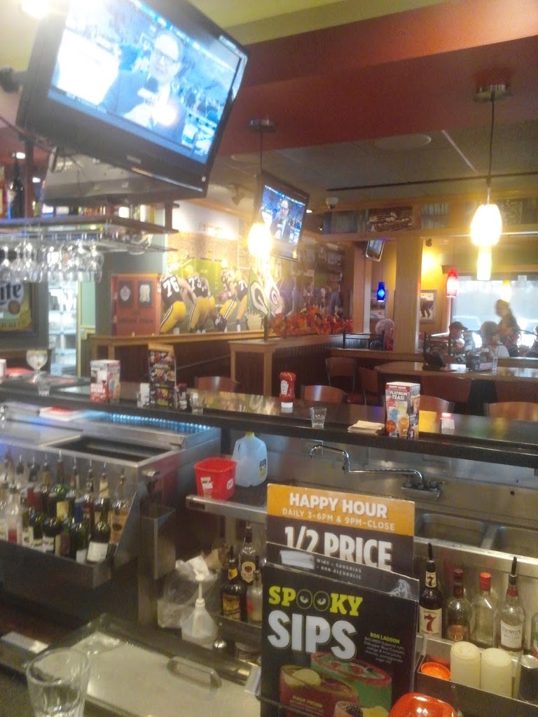 Stopped while traveling for dinner and went to sit at bar. There was only one person sitting there but all but one seating area was dirty so I had to sit by the take out rail.