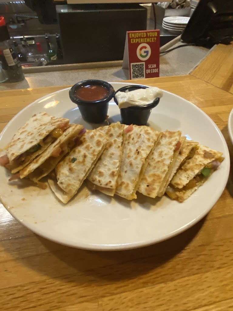 We both had the Oriental chicken salad. It was very good. Tried their cheese sticks also very good and of course the Spinach and artichoke dip delicious as always.