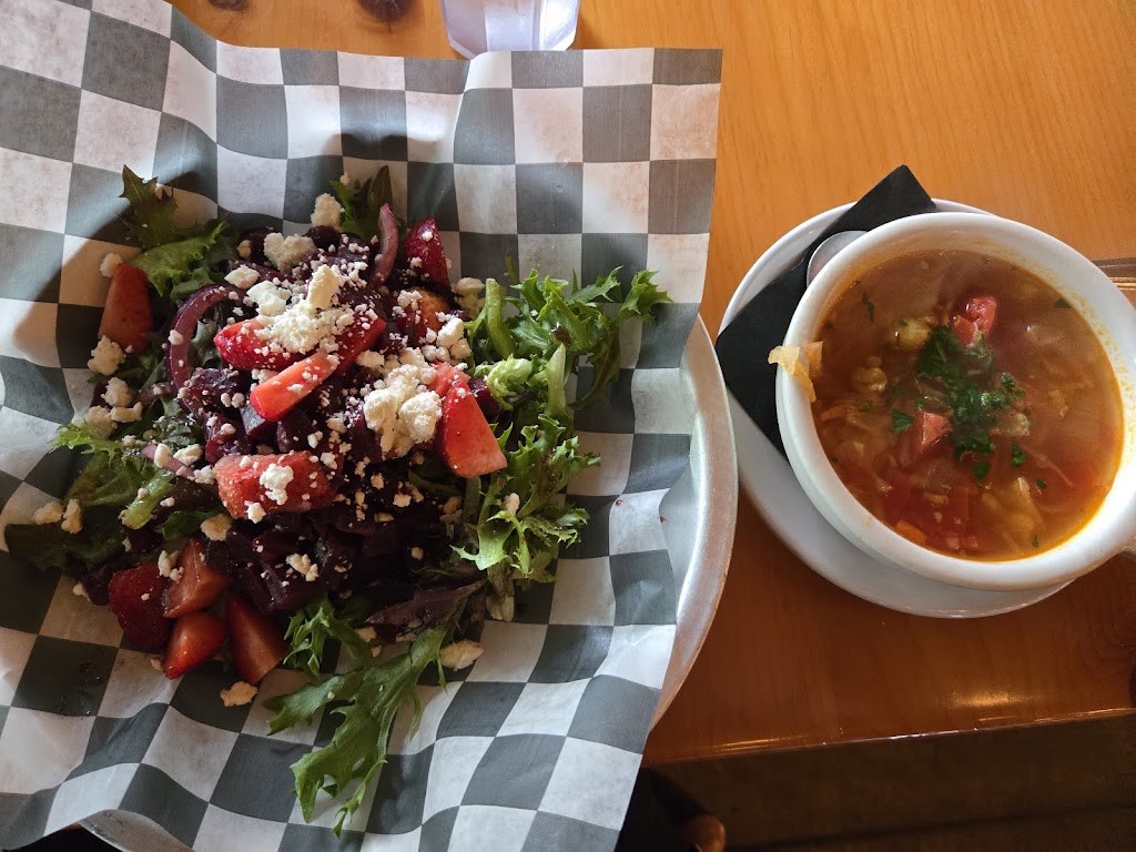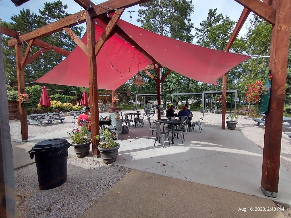 Stopped for lunch. What a gem in the little Northwoods town of Boulder Junction. Nice beer and wine selection. Shared the warm pretzel with chipotle cheese sauce and honey mustard, a stone fired sausage and pepperoni pizza with added mushrooms and kalamata olives and the black bean chilli. Cozy dining area with a seat right by the fireplace. Would love to return for their dinner fare and to try out the outdoor area in warmer weather.