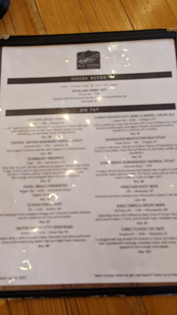 Nice lodgy ale house with delicious flat beads (I refuse to call it pizza), and spinach artichoke dip was amazing. A good selection and variety of beer/wine. Enjoyed the Drunk Gandolf and Rocky Reef formally divine Belgian ale (so good). The Penguin loved the sour lions tale mother pucker. Will be back next trip!