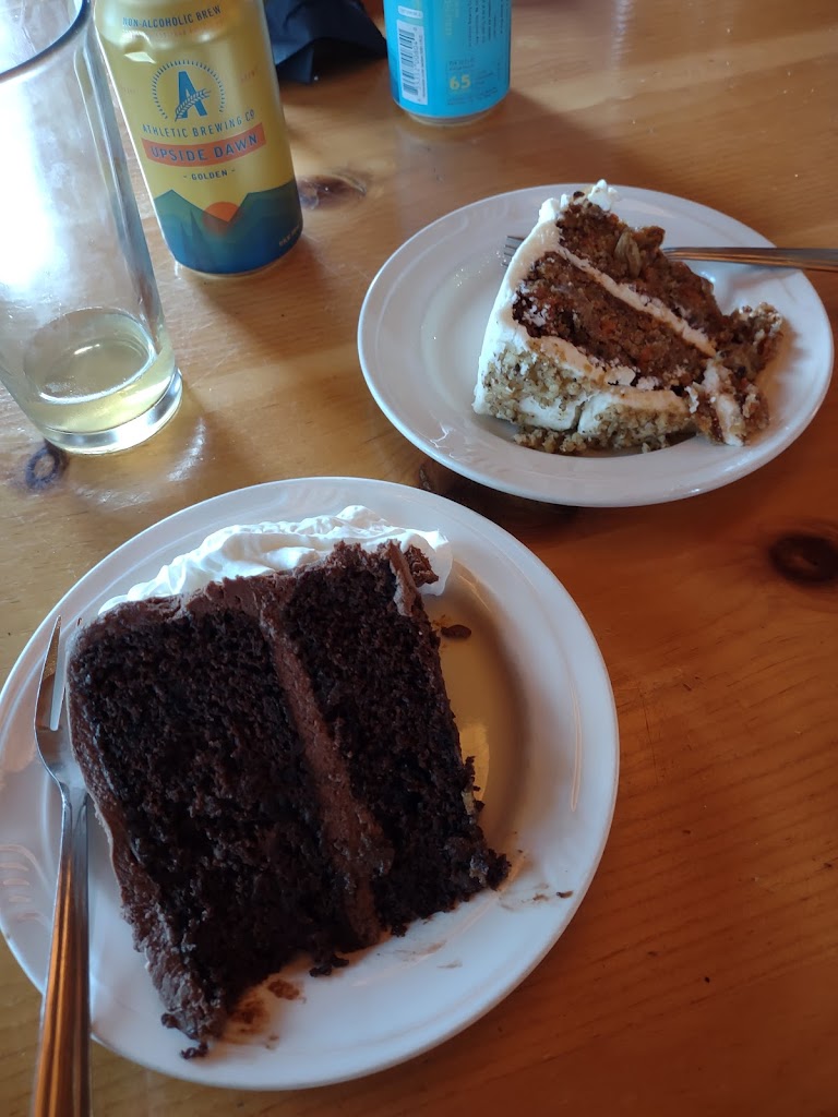 Delicious dinner date. We both had the Jalapeno Chicken sandwich and a piece of chocolate cake and carrot cake.