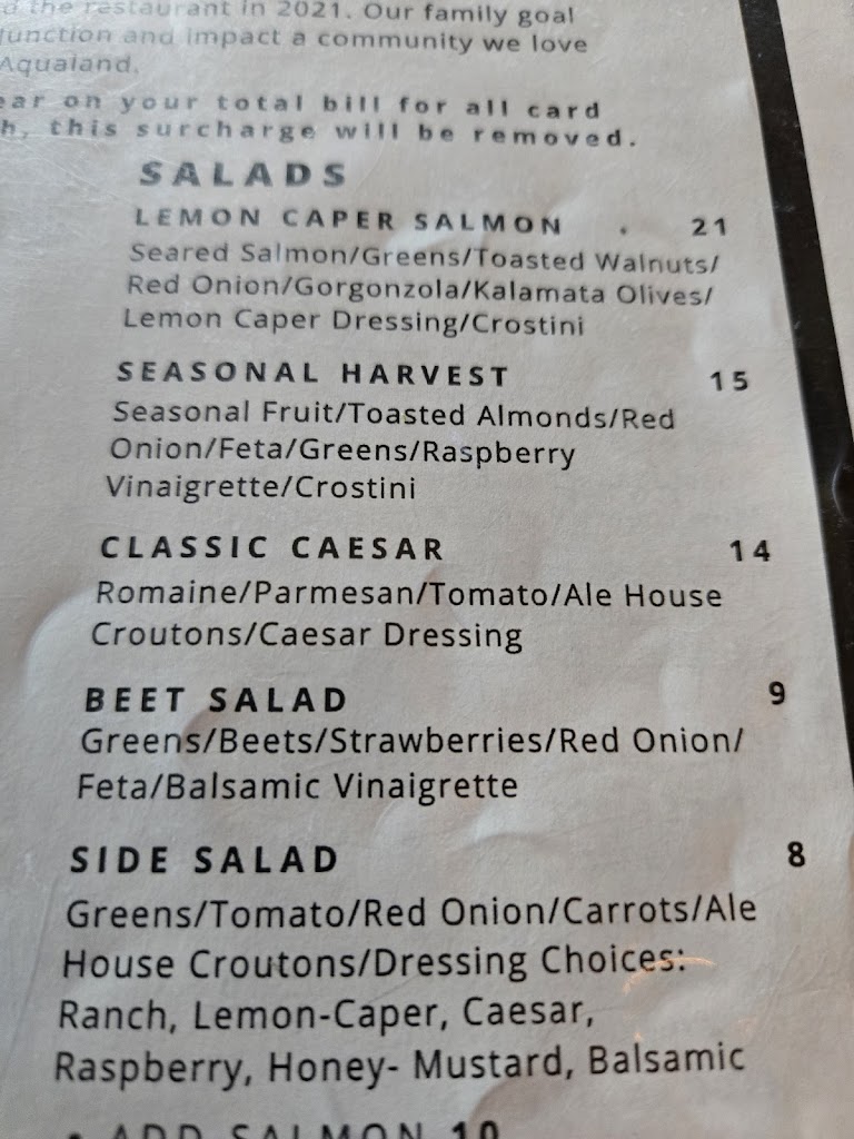 Aqua land Ale house is a great stop for fresh, flavorful food ready and served by a great staff.