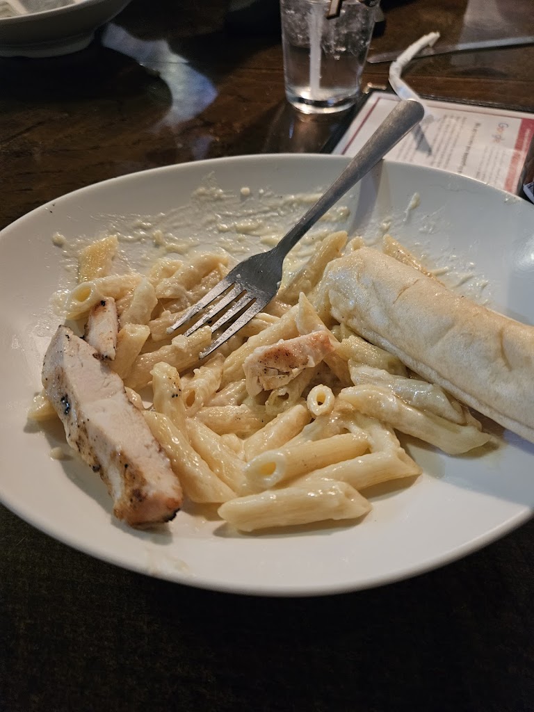 We enjoyed Chicken Fettuccine Alfredo and Italian Cheese fries