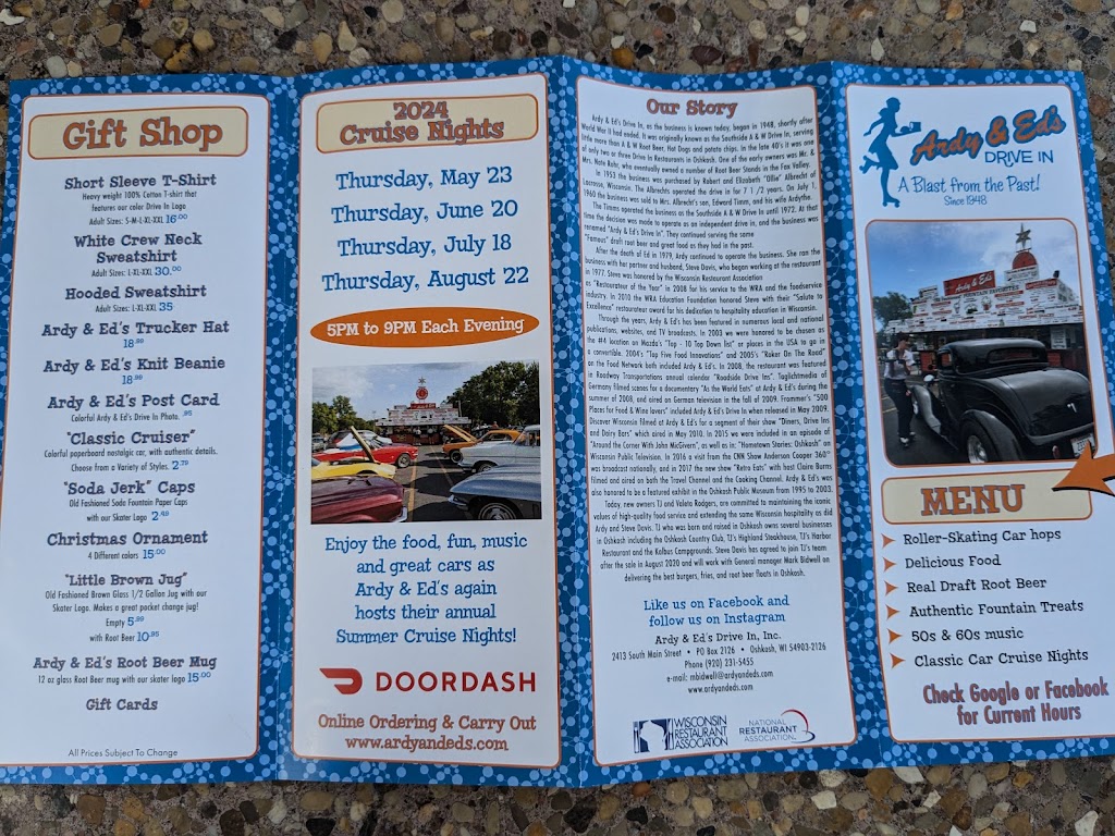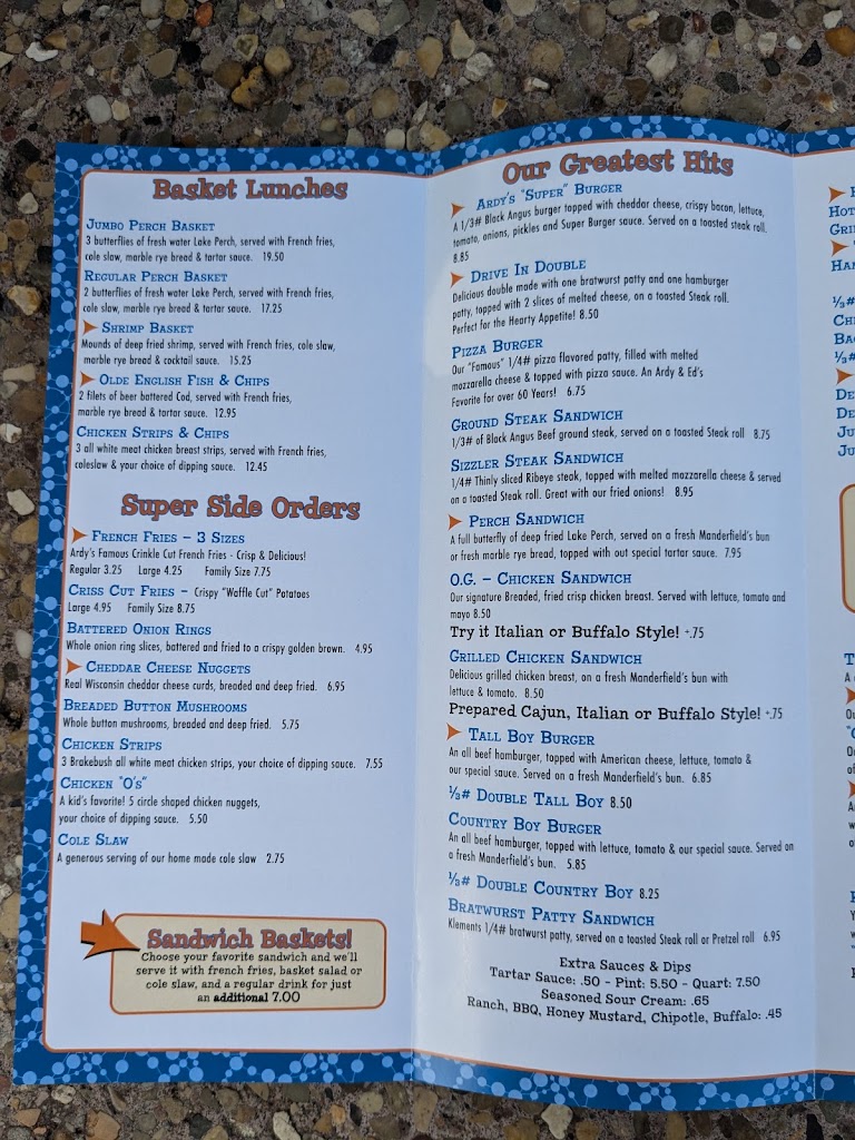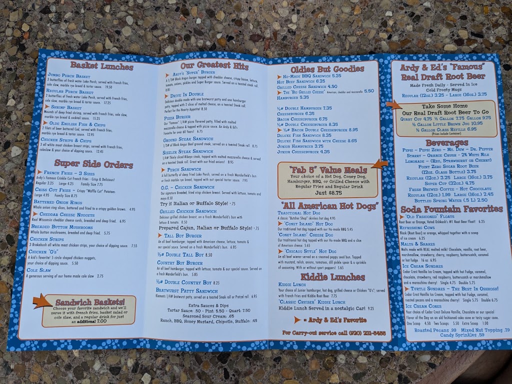 The vibes! Ardy & Ed’s will take you back in time. It’s an old fashioned drive-up burger joint. The servers meet you at your car and deliver your meal on roller blades. I had the super burger, my son got the kid’s cheeseburger meal, and we both enjoyed an ice cold draft root beer in a frosty mug. The food was delicious! We will definitely be back.