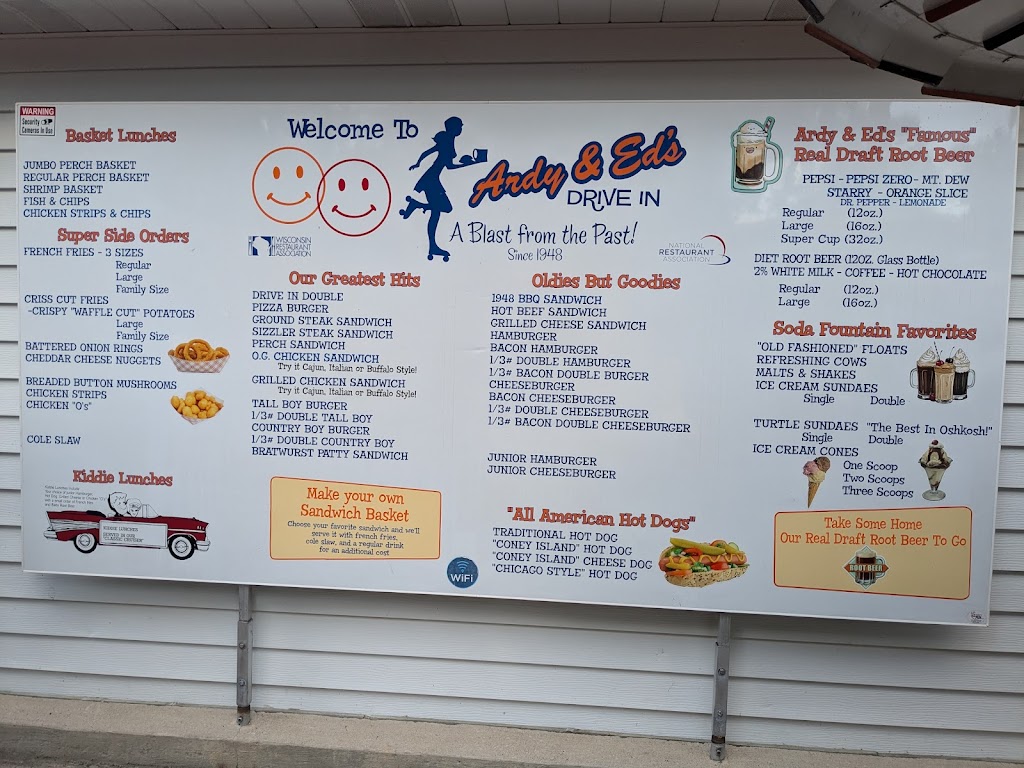 We went for ice cream and fried cheese curds with my middle school aged niece and nephew. Ice cream and cheese curds were delicious. Great atmosphere with the waitresses in roller skates. Plenty of tables. We were a group of 6. The lake is close by. Great Oshkosh icon. Recommend it if you have not been to a drive-in.