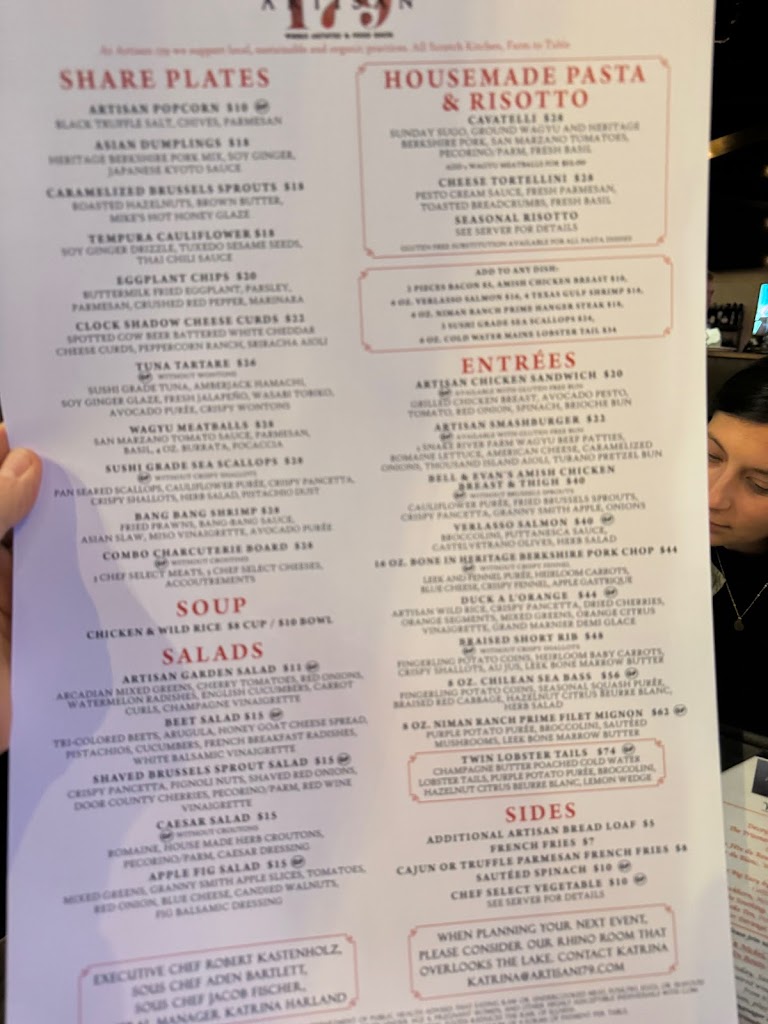 Amazing experience at Artisan 179! The Asian dumplings, beet salad, and filet were all outstanding, and the cocktails were spot-on. Beautiful lake view, wonderful owner, and friendly servers make this place a must-visit!