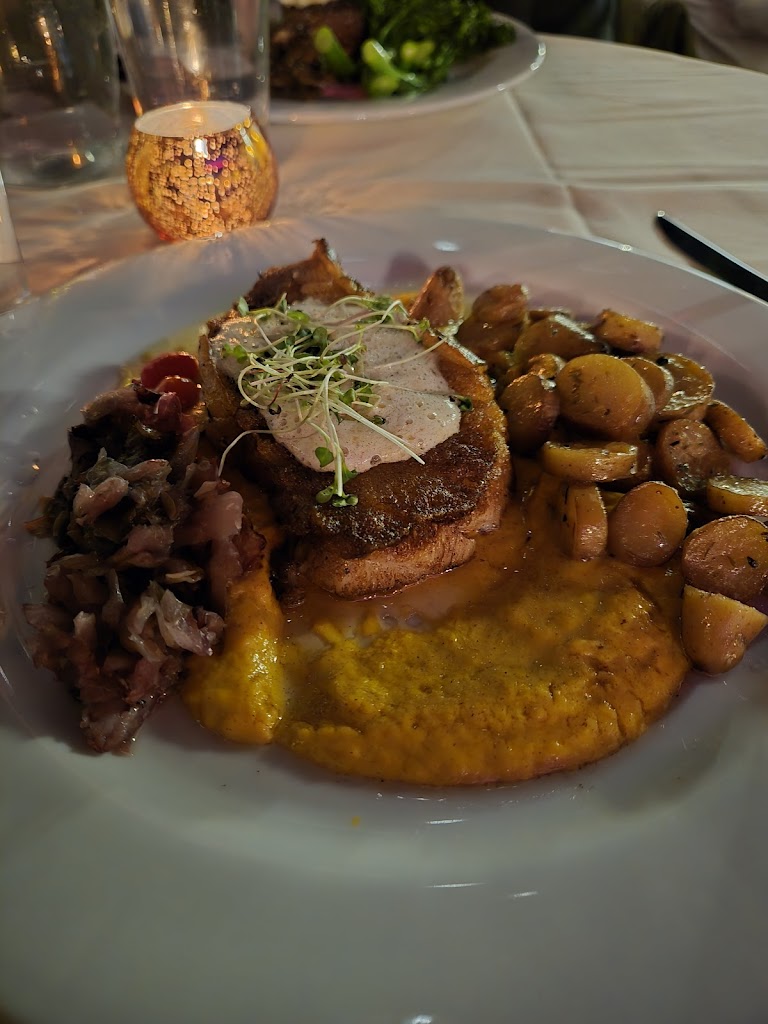 This place disappointed us. We ordered cocktails and the gnocchi as an appetizer, all of which were fantastic; things started off very strong. Then my husbands pork chop dish came out lukewarm (they microwaved it to heat it back up) and while my steak was hot, everything else on the plate was cold. My steak was also extremely over salted (it reminded me of Texas Roadhouse with how salty it was; prime steak doesn’t need that much salt). They remade mine, but it came out so late my husband was almost done eating his reheated food before I got mine. The server brought me soup (that I did not ask for or want) to hold me over while I waited. While I was eating my steak, the manager came over and said sorry but didn’t make eye contact with my husband or I, he just stared off into the distance and then walked away. I was interested in ordering dessert, but our server brought us the limoncello mousse as a “sorry for the cold food” before even asking us what dessert we’d even prefer. Neither I or my husband care for lemon (we are chocolate people) but ate a few bites as not to be rude. Nothing was taken off of the check. It was $182 before tip. I used to work in fine dining and I feel like management offering a round of drinks and a dessert of choice or taking off the appetizer and offering a free dessert of choice (and actually making eye contact with your customers) would have gone a long way instead of just bringing us food we didn’t even desire. I just can’t recommend this place when there are other places that deliver better service and food at a similar or lower price point.