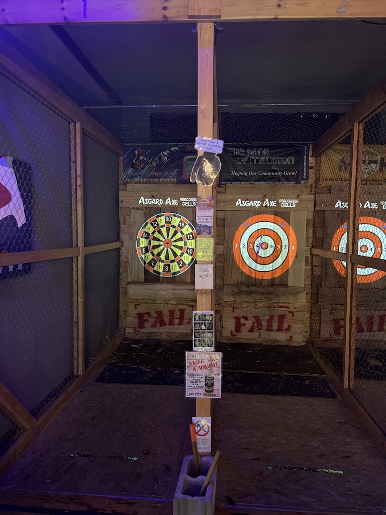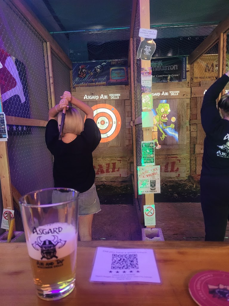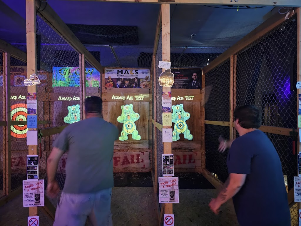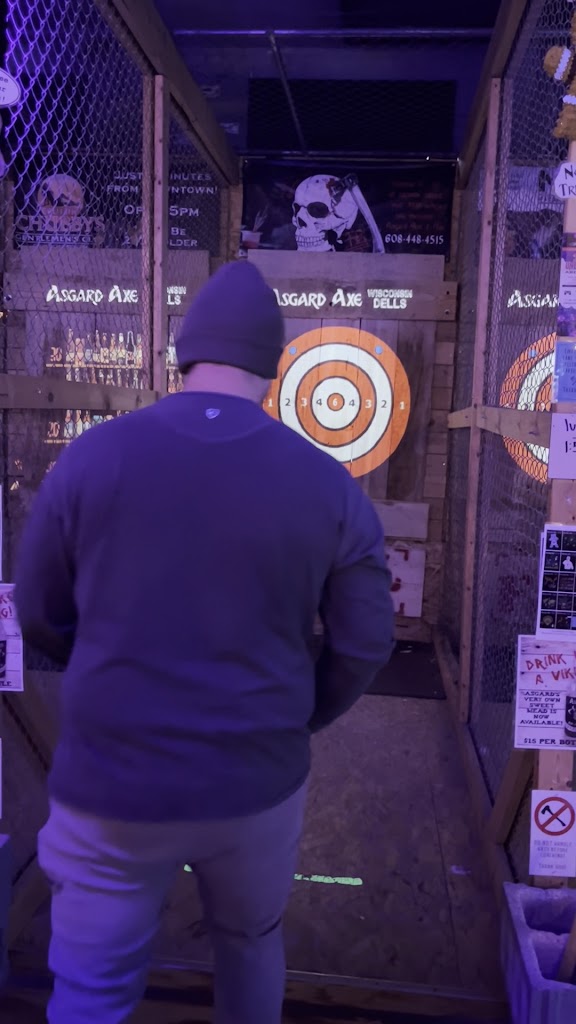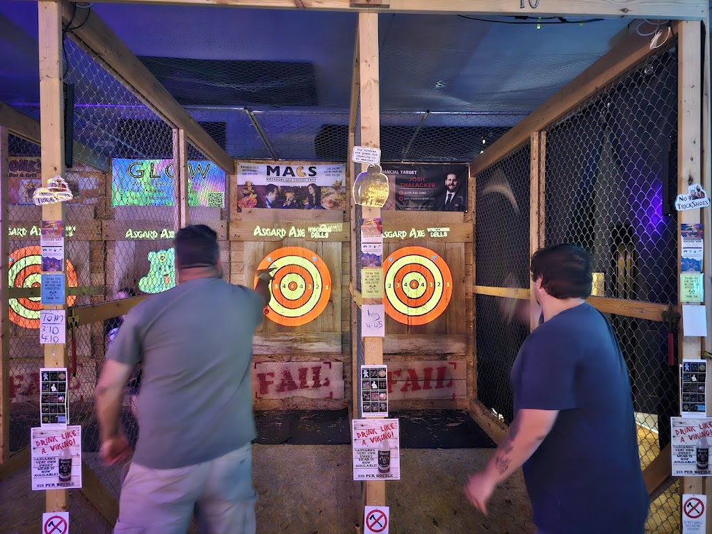 Axe throwing restaurant and entertainment venue! New full service bar on both levels! Asgard offers a comfortable safe axe throwing environment for ages 10 and up. We also have activities for pretty much all ages! We are proud to be the bachelorette and bachelor party headquarters of Wisconsin Dells!