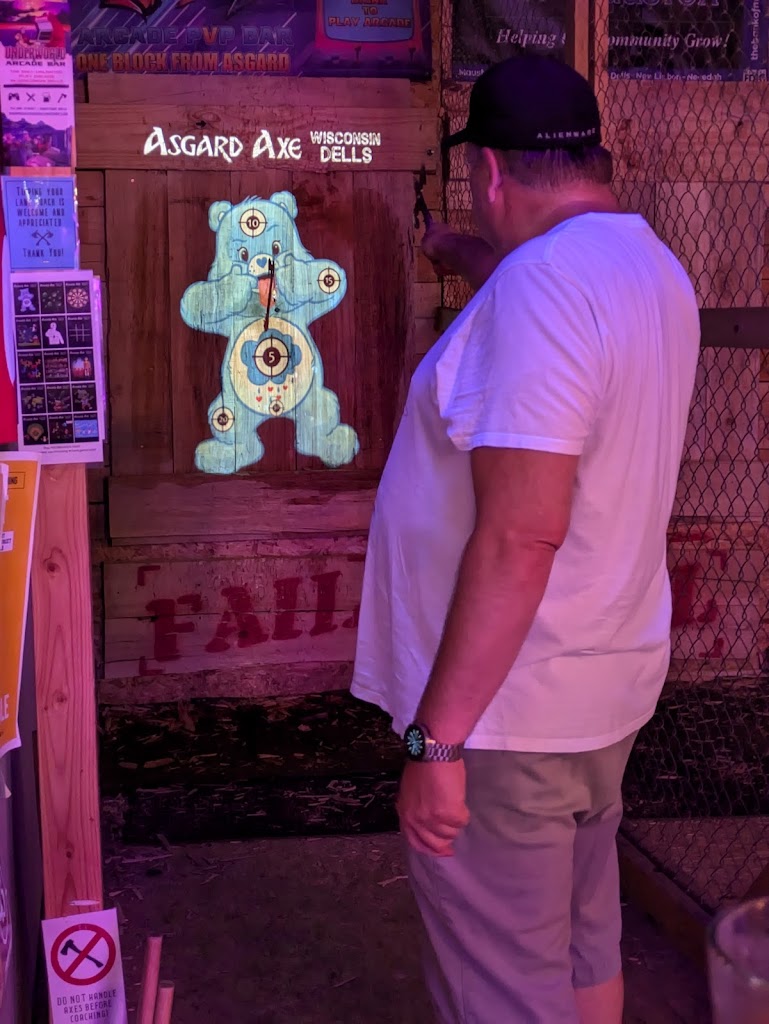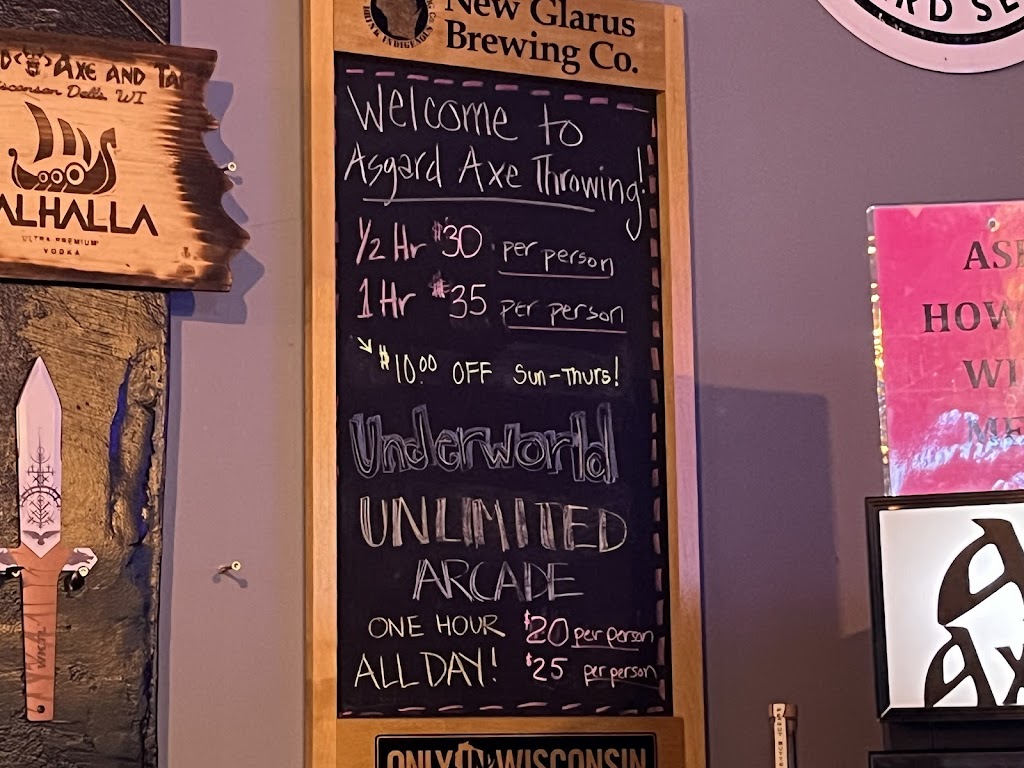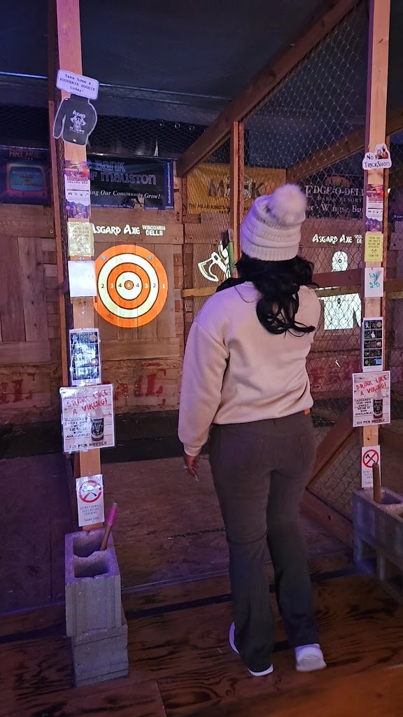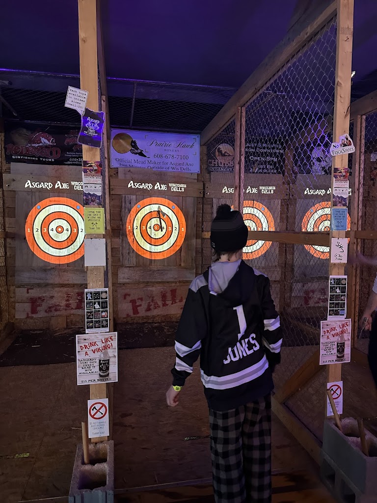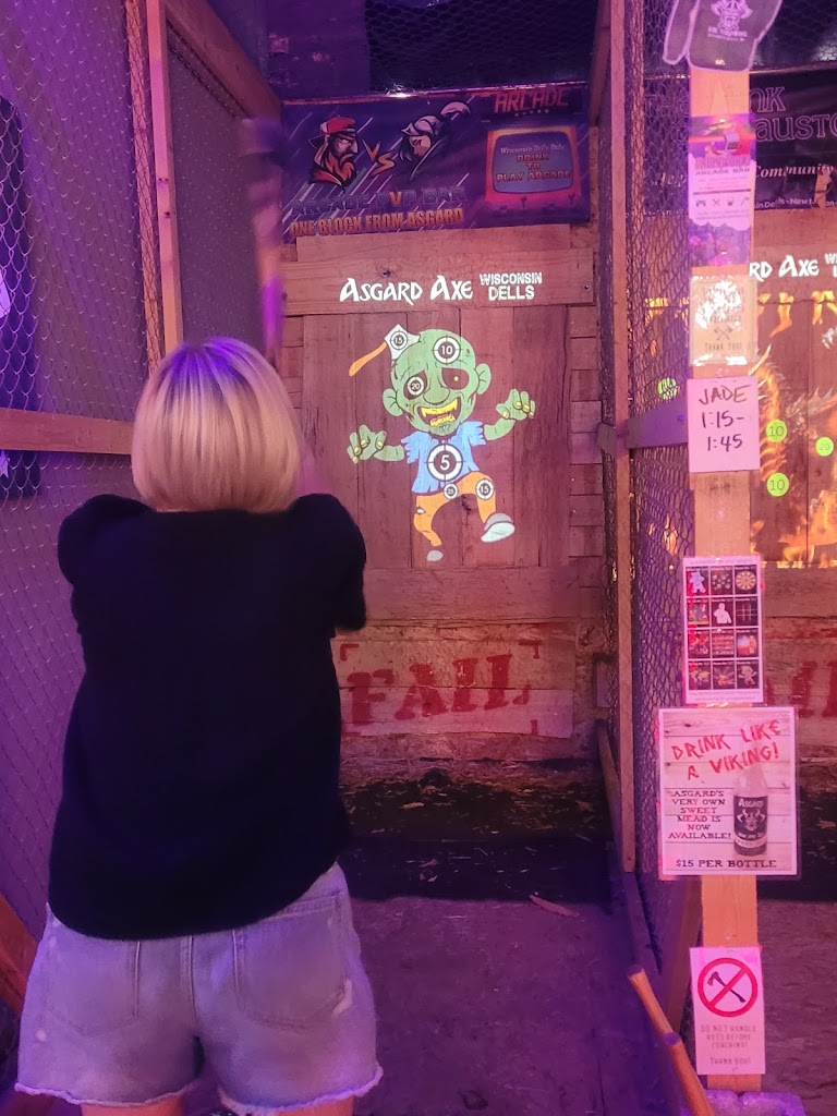 Axe throwing restaurant and entertainment venue! New full service bar on both levels! Asgard offers a comfortable safe axe throwing environment for ages 10 and up. We also have activities for pretty much all ages! We are proud to be the bachelorette and bachelor party headquarters of Wisconsin Dells!