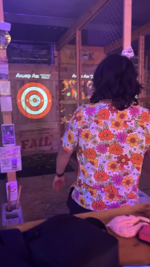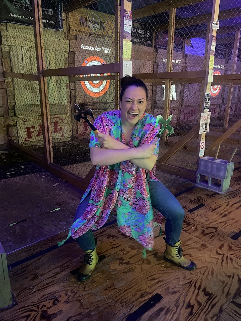 My girlfriend and I went to Asgard for axe throwing and to play some video games at their arcade. I would recommend this place. I absolutely loved the Nordic theme of this place. The staff were friendly and pleasant. There was a nice lady who showed us how to throw axes properly. The arcade area downstairs was neat and had lots of vintage games. Their beer was not bad either.