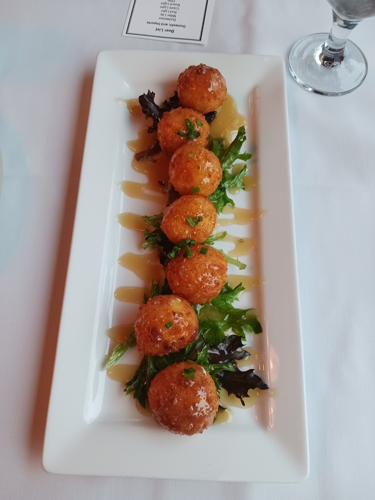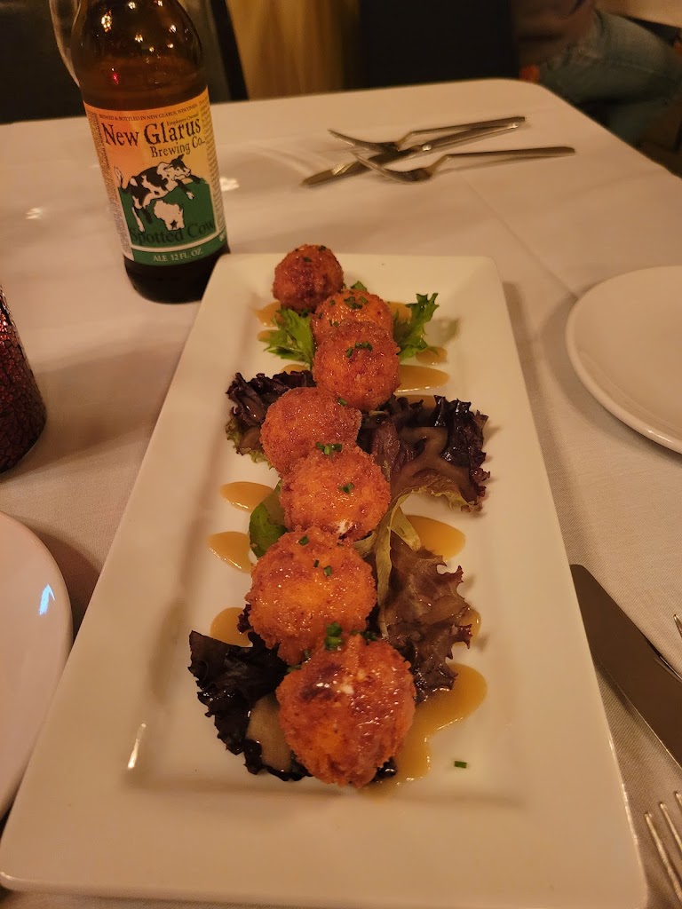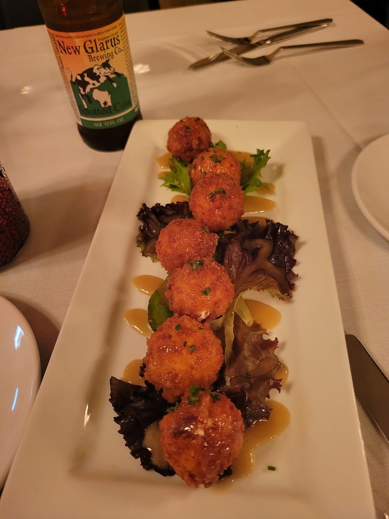 Fancy in the woods! Goat Cheese Balls ARE A MUST. PEROID!! Every time we are home for a visit, we make sure to stop for dinner. Worth every penny.
