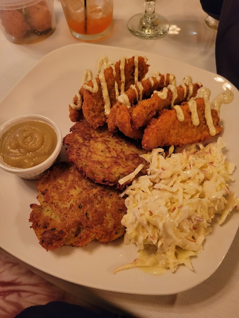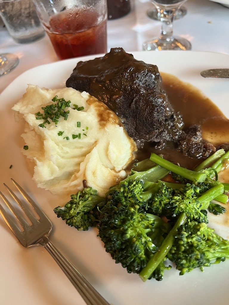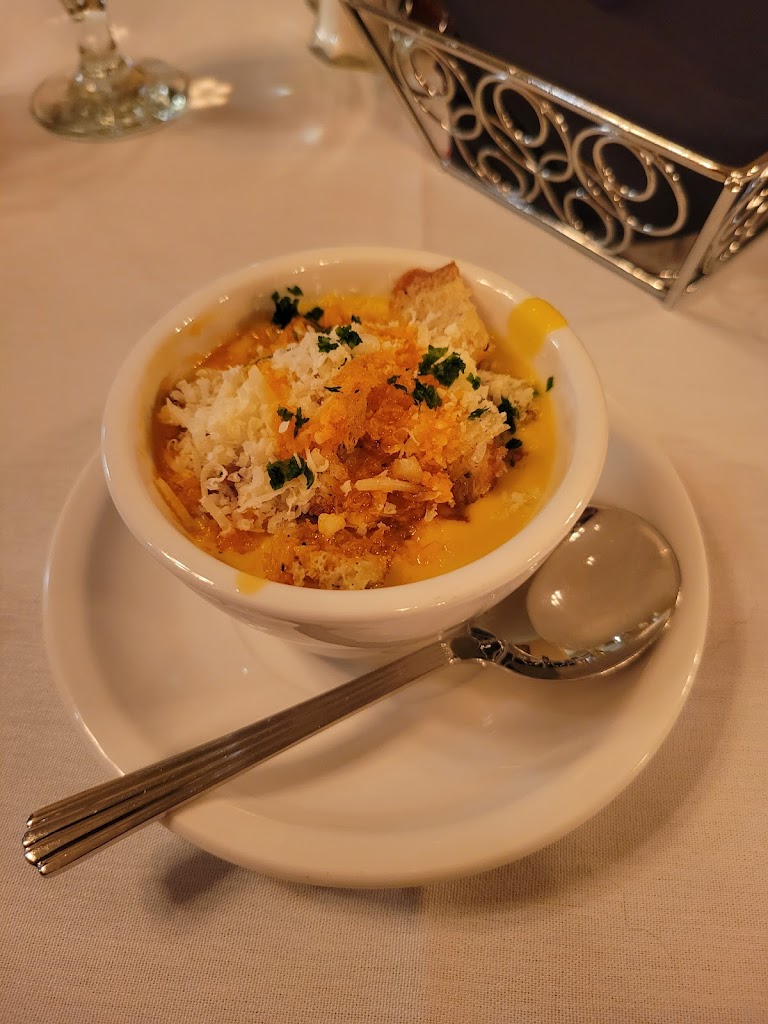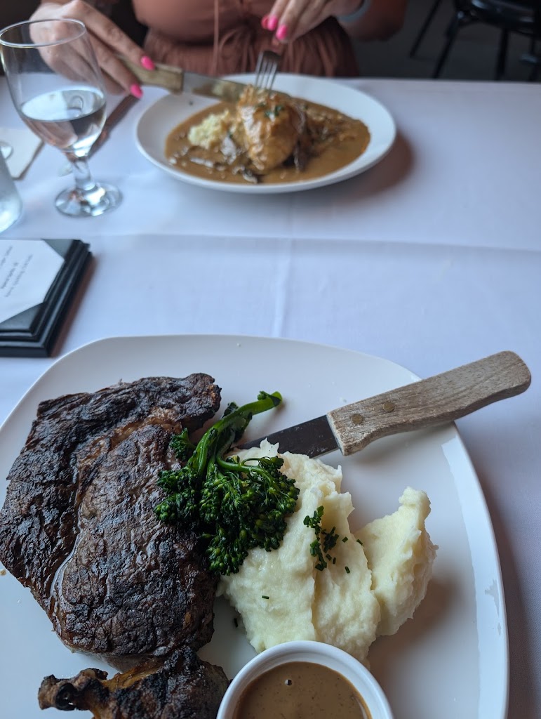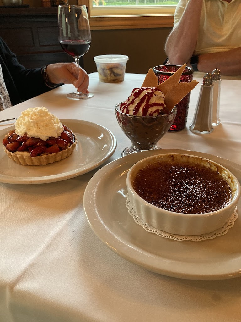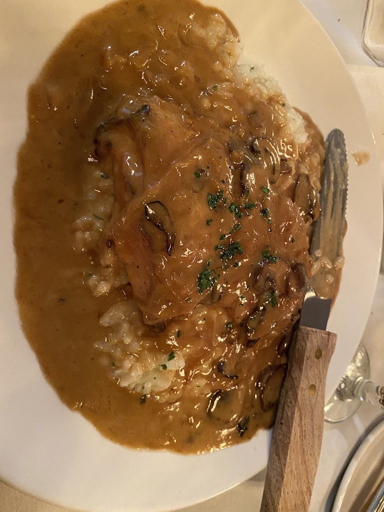 This restaurant is an absolute gem and a top notch restaurant! I have given a 5-star review before and it still holds true. Delicious food and consistent. We had the veal schnitzel, goat cheese balls, truffle fries, steak, mashed potatoes, broccolini, soup, salad, and delicious bread. None of us had room for dessert, there was a lemon blueberry crème brûlée on the menu last night.