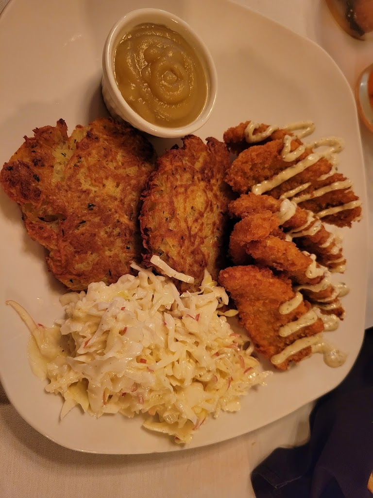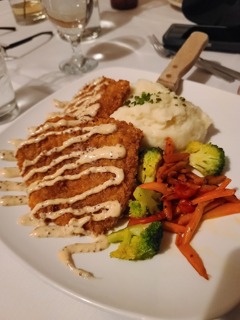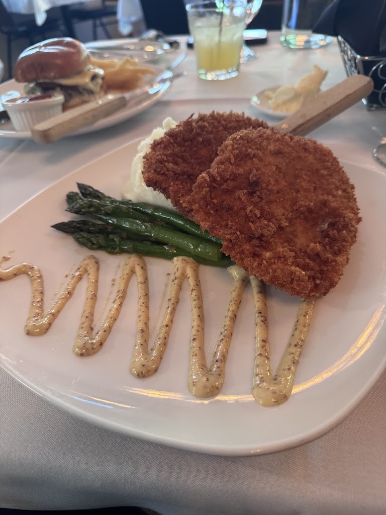 The schnitzel was perfectly seasoned, and fried to be perfectly crunchy. Not greasy at all. The mashed potatoes were smooth and creamy. The asparagus was cooked without being limp and the seasoning of all the good was on point.
