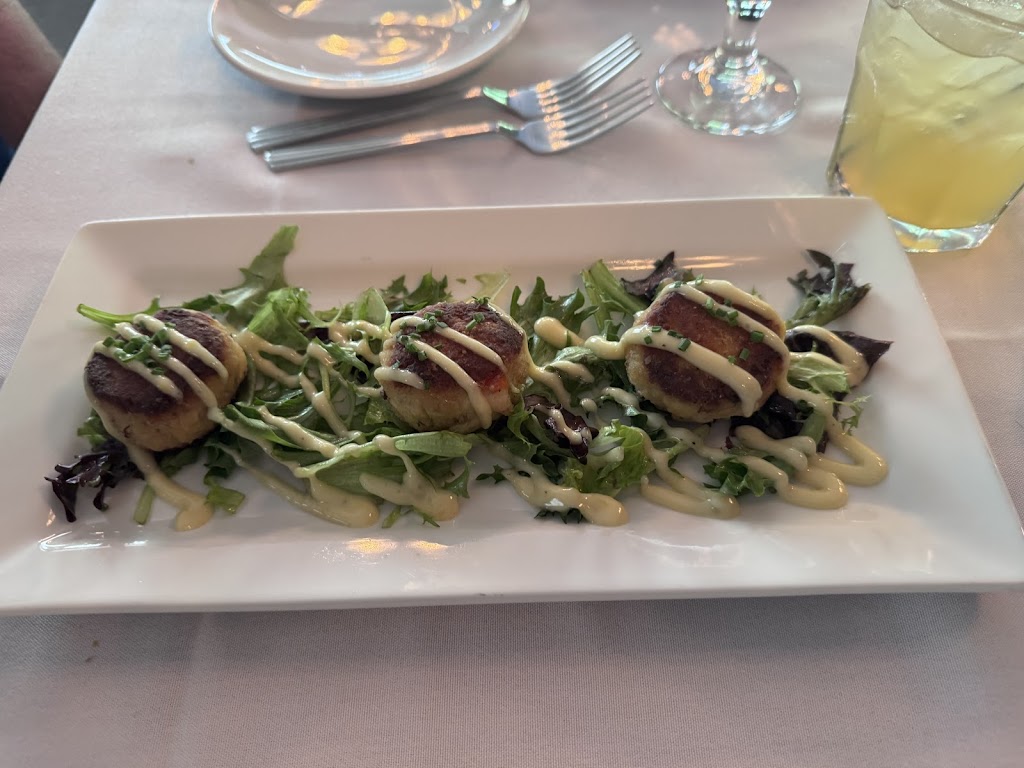 The crab cakes are made with REAL crab and no filler. Cooked to perfection. Excellent flavor.