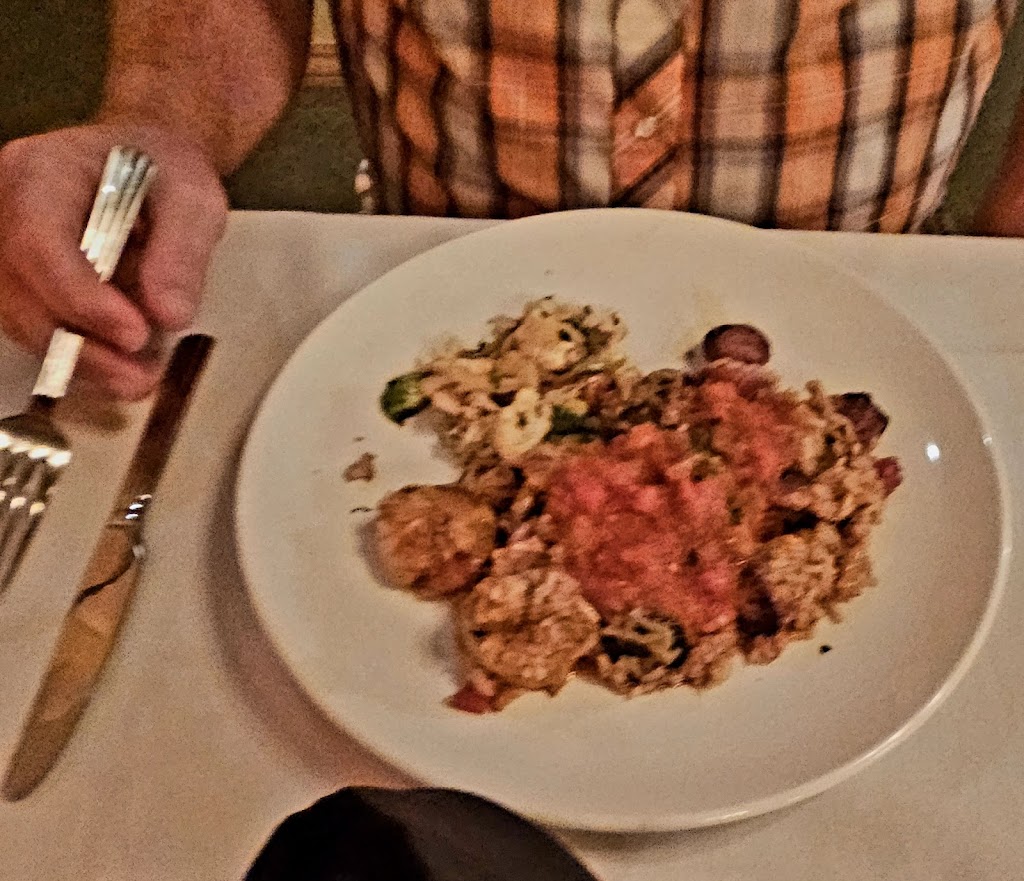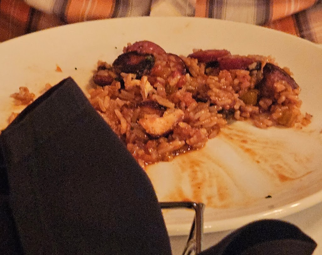 The hostess brought our entrees to us. The burnt jambalaya was obvious, yet she still served it to us.