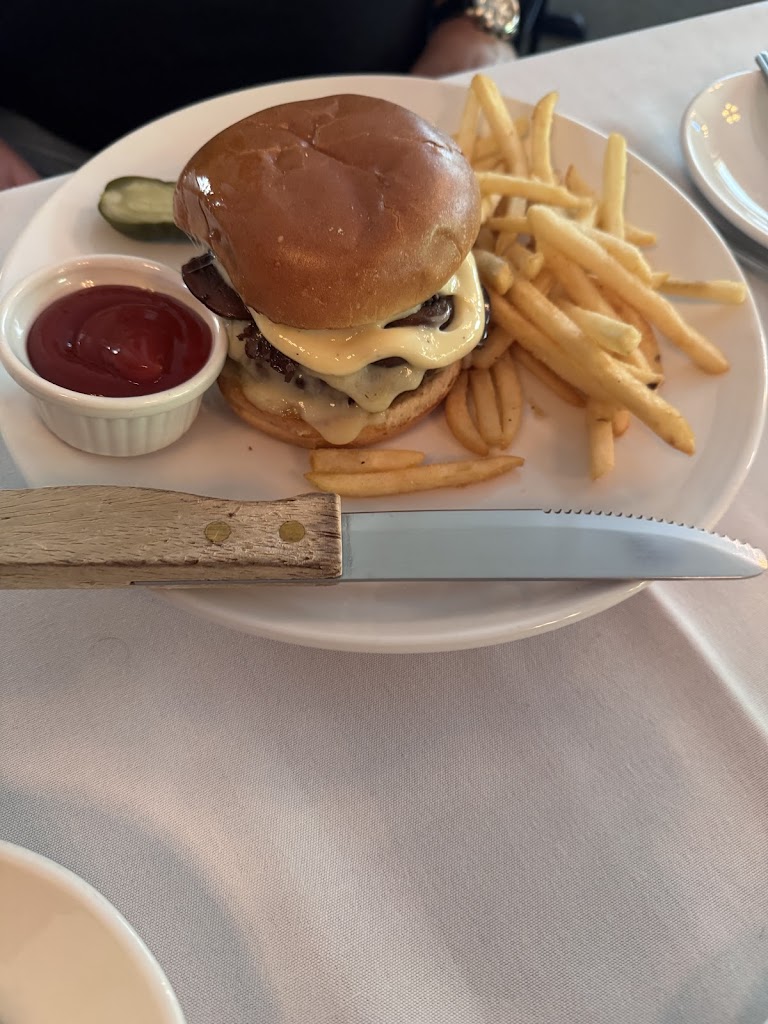 The hamburger was cooked exactly how my husband ordered it. The French fries were well seasoned and golden brown. I had a bite of his burger and the flavor was incredible.